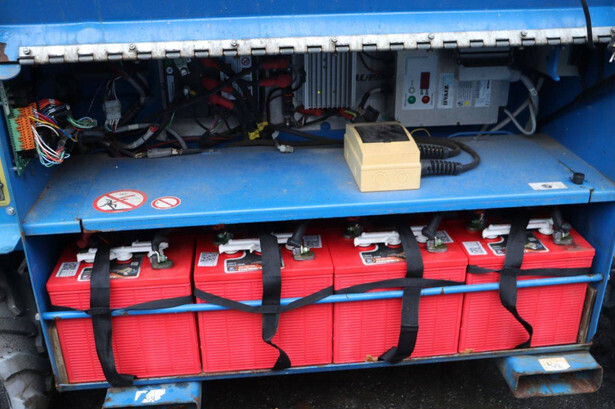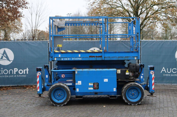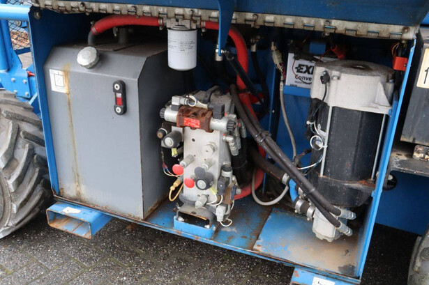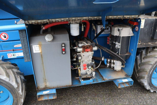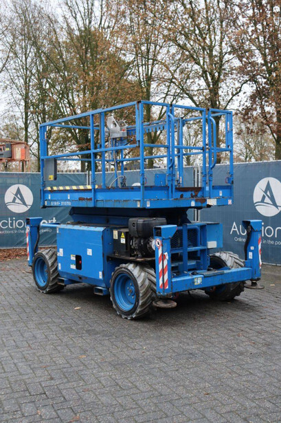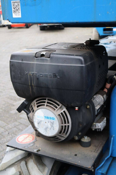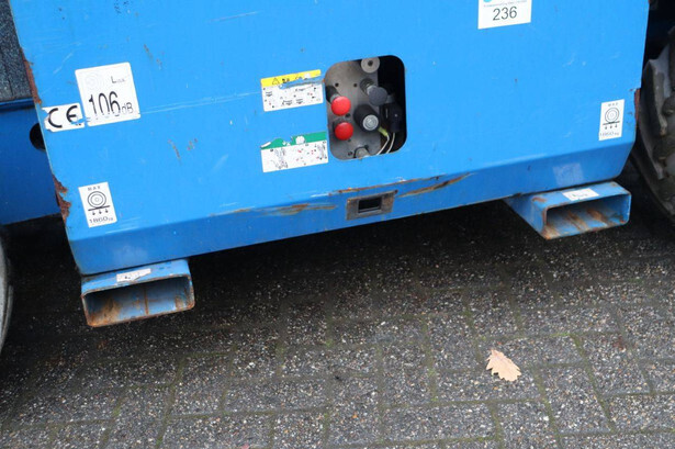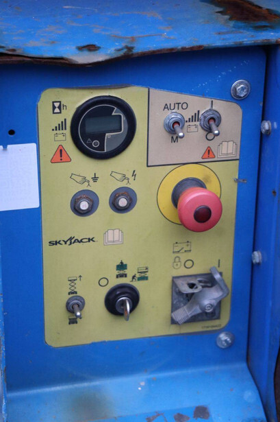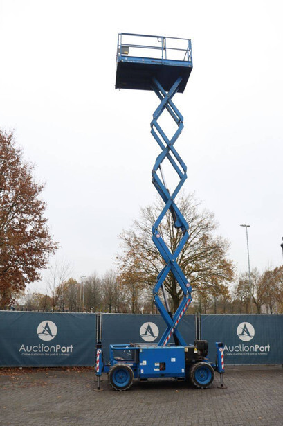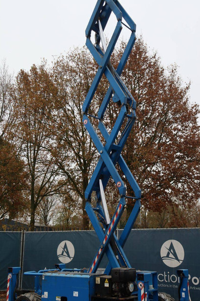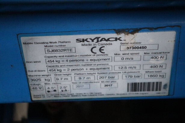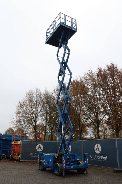 Brand: AC Type: SJ6832RTE Serial number: 37300450 Year of construction: 2017 Fuel: Diesel Lifting capacity: 454 kg Working height: 11.7 m Operating hours read: Not known Machine weight: 3925 kg Chassis: Wheels Type: Scissor lift Tires: Pneumatic tires Color: blue