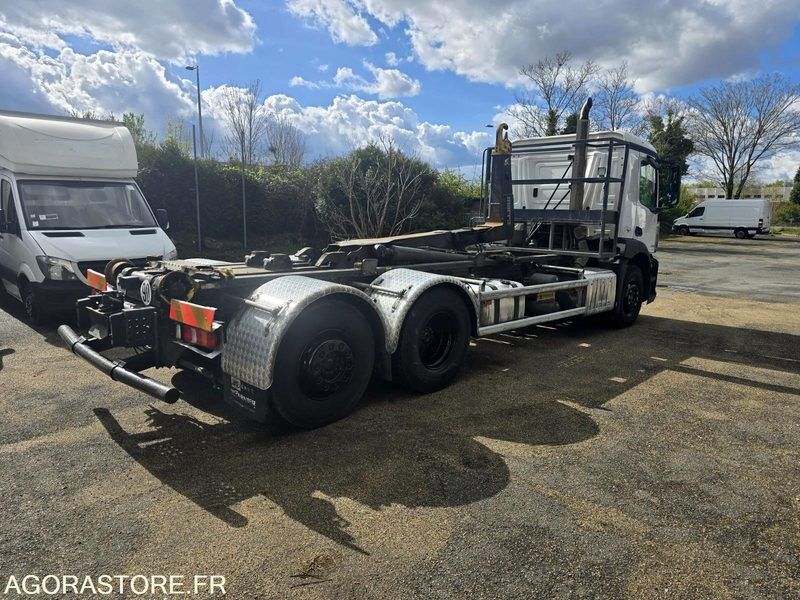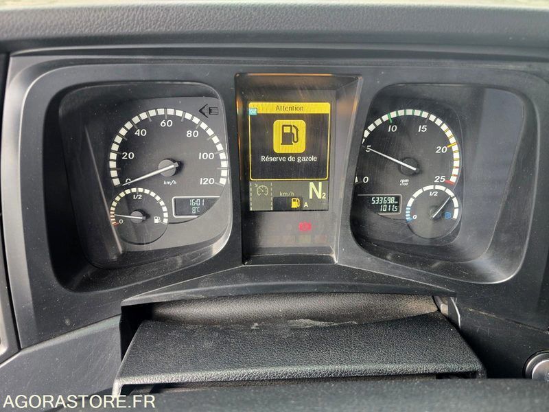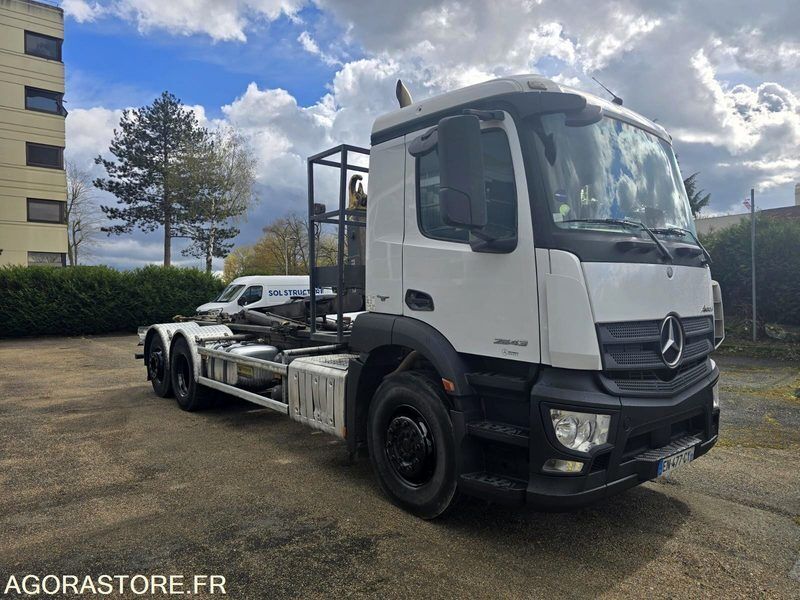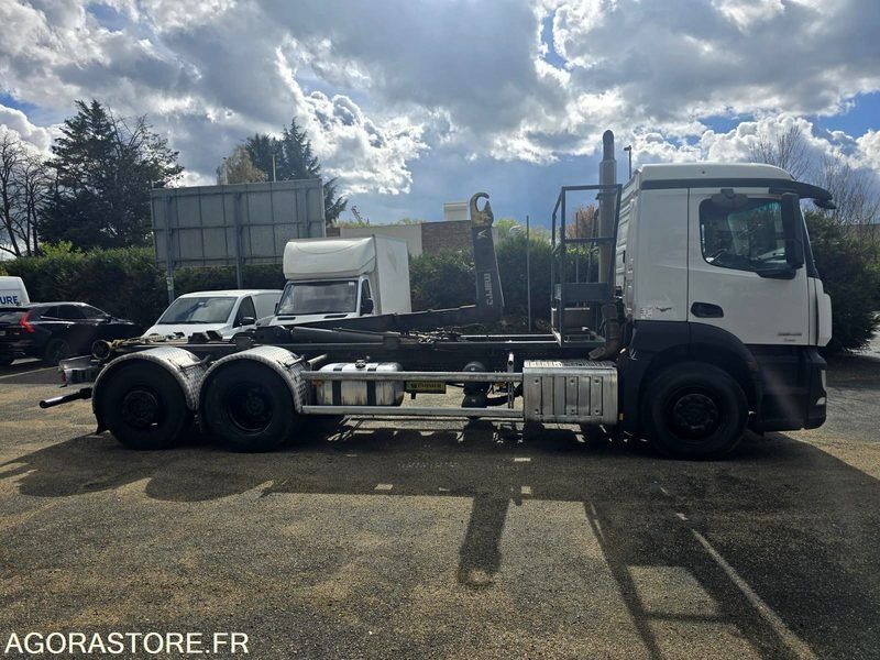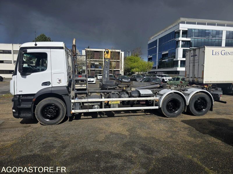 FR: Type de véhicule Ampliroll - Polybenne Date et lieu de visite: Gonesse IMPORTANT: Vendu dans l'etat Etat carrosserie: Bon Etat intérieur: Bon Etat des pneus: Bon PV / PTAC / PTRA: 26t Etat moteur boite pont: Bon Ad Blue: Oui Mercedes Benz Antos 2543 2017 530.000kms Boite de vitesses: Automatique 6x2 - dernier essieu relevable et directionnel Bras Garnier 18t Coulissant et Articulé