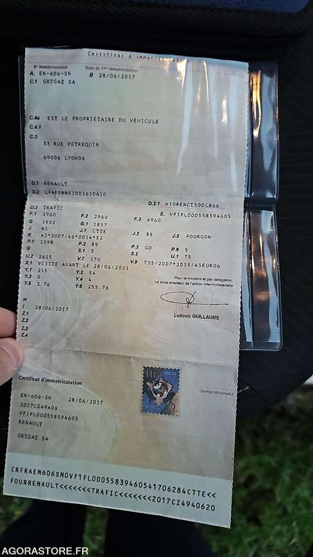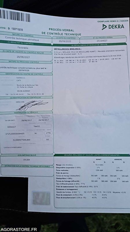 Renault TRAFIC Power: 121 Engine volume: 1598 Fuel: gas Axle 1 common tyre size: 205/65R16 Gearbox type: manual Overall height: 1.95 Overall length: 5 Overall width: 1.96 FR: Type de véhicule FOURGON Etat carrosserie: Moyen Etat intérieur: A nettoyer Etat des pneus: Mi usure Transmission: AVANT Etat soubassements: Bon Véhicule roulant Moteur tournant Un rapport d'inventaire est fourni dans la rubrique « documents » Ref No:XR49393 VIN: VF1FL000558394605
