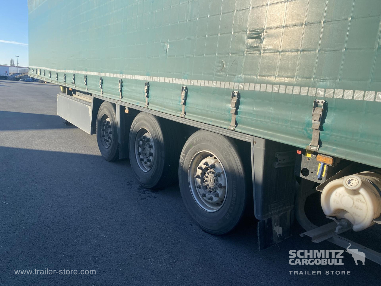 **Safety**\\Rear underrun, Antilock Braking System ABS\\\\**Exterior**\\Air suspension, Roof rolling tarpaulin, 1x15 and 2x7 pin plug, Antispray\\\\**Brake system**\\Disc brake, Schmitz ROTOS\\\\**Loading area**\\Length 13.620 mm, Width 2.480 mm, Height 2.700 mm, Volume 91 m³\\\\**Tyre sizes**\\ 385/65 R22.5 , 385/65 R22.5 , 385/65 R22.5\\\\**Other dimensions and weights**\\Payload: 30.257 kg, GVW: 38.000 kg\\\\----