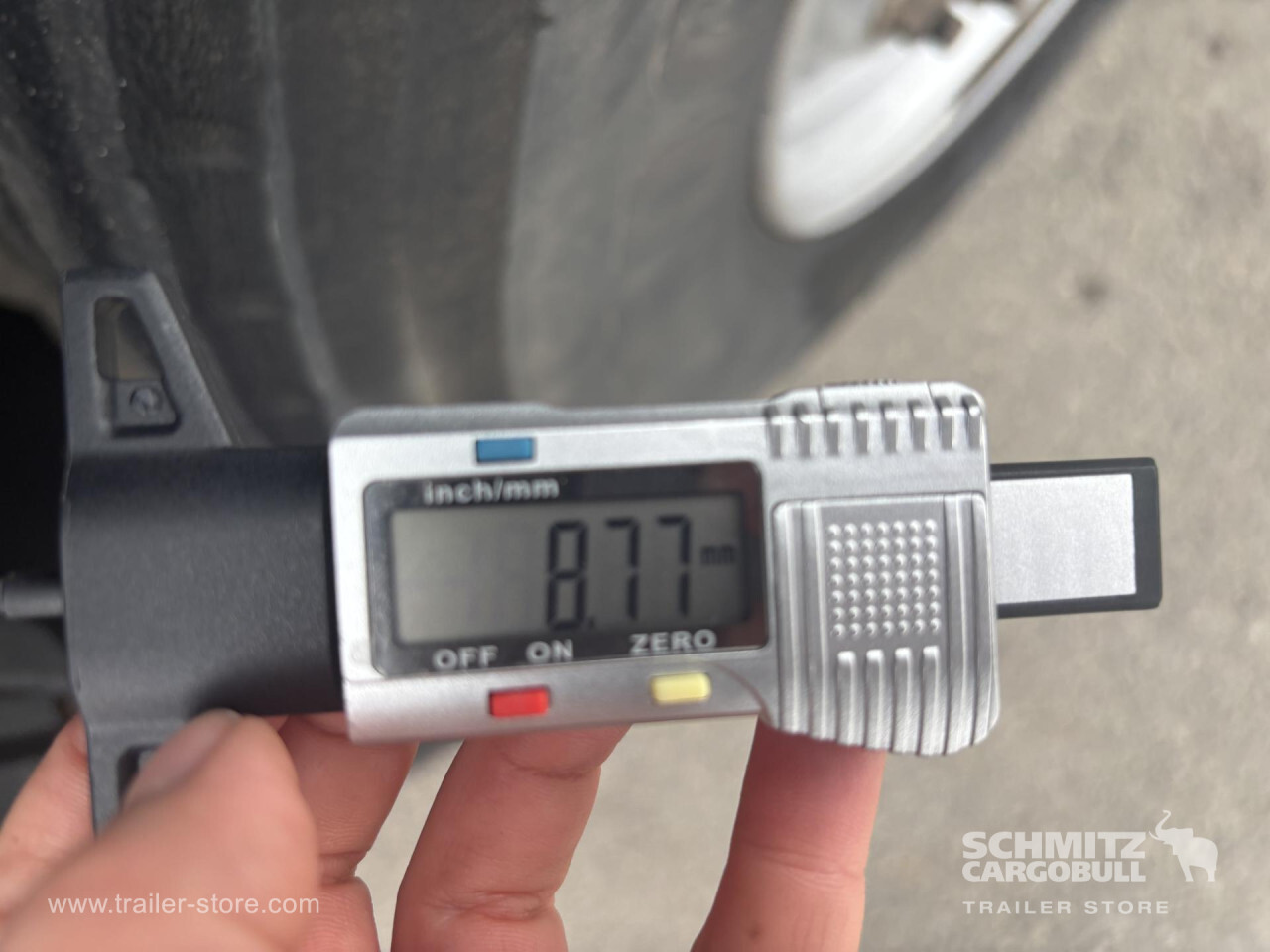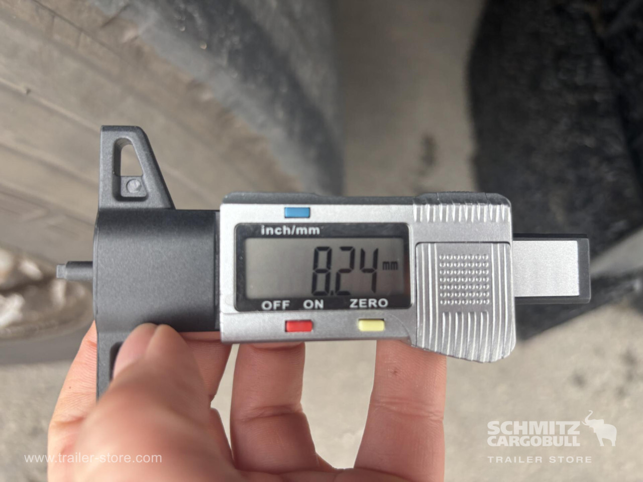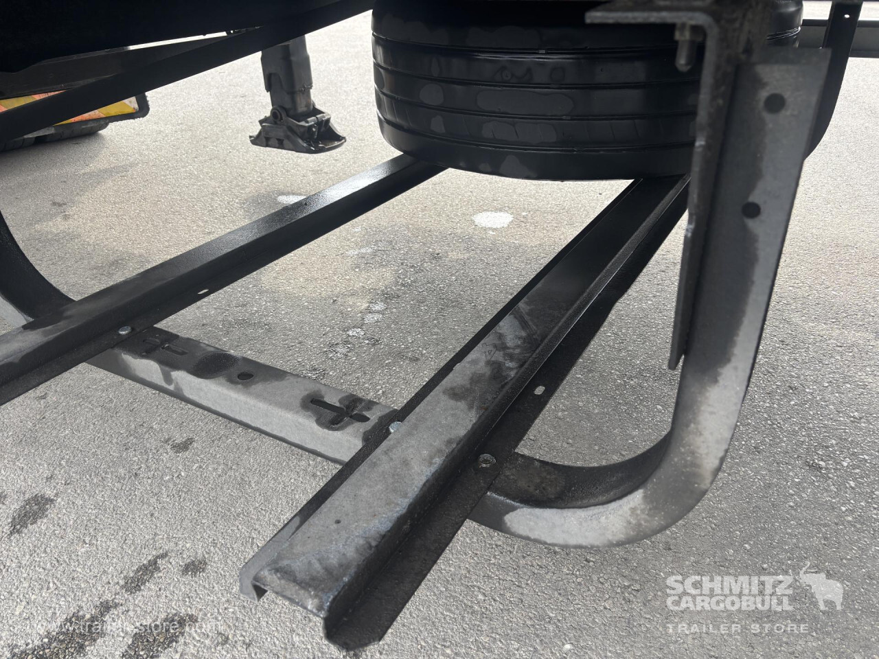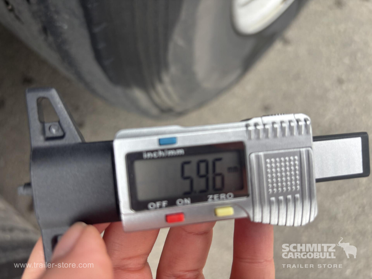 Remarks: **Safety**\\Rear underrun, Antilock Braking System ABS, Hubodometer\\\\**Interior**\\Additional stake pockets\\\\**Exterior**\\Air suspension, Toolbox, Spare wheel carrier double, Ferry lashings, Bolted chassis, Sliding roof, 1x15 and 2x7 pin plug, Antispray, Lifting roof (manual)\\\\**Cargo securing**\\DIN EN 12642 (code XL) certificate, Aluminium slats\\\\**Brake system**\\Disc brake, Schmitz ROTOS\\\\**Loading area**\\Length 13.620 mm, Width 2.480 mm, Height 2.700 mm, Volume 91 m³\\\\**Tyre sizes**\\1. Achse: 385/65 R22.5 , Tread depth: 6 mm / 8 mm, 2. Achse: 385/65 R22.5 , Tread depth: 8 mm / 8 mm, 3. Achse: 385/65 R22.5 , Tread depth: 8 mm / 5 mm\\\\**Other dimensions and weights**\\Payload: 31.800 kg, GVW: 39.000 kg, Wheel base: 7.700 mm\\\\----
