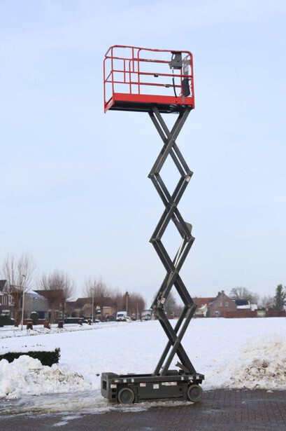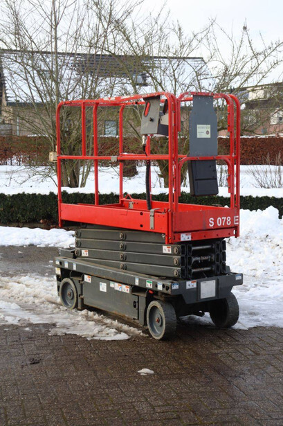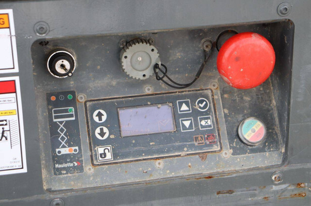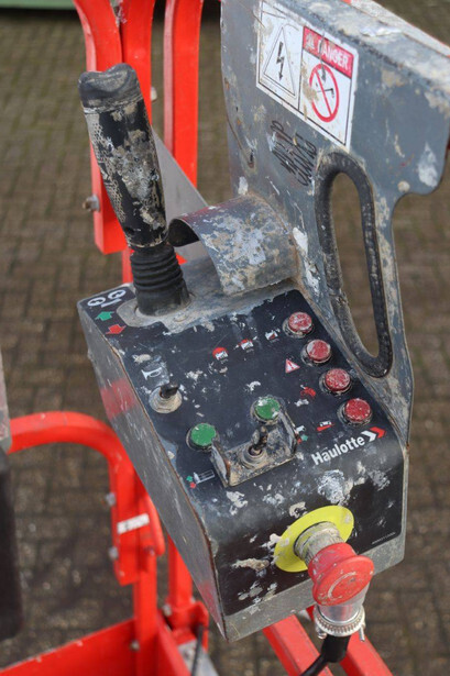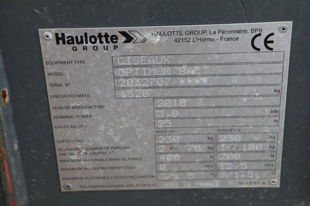 Brand: Haulotte Type: OPTIMUM 8AC Serial number: 2032707 Year of construction: 2018 Fuel: Electric Lifting capacity: 230 kg Working height: 8 m Machine weight: 1520 kg Chassis: Wheels Type: Scissor lift Tires: Non-marking tires Color: red
