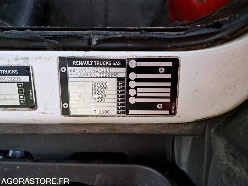 Renault D WIDE Color: white Power: 326 Engine volume: 7698 Fuel: diesel Axle number: 3 Axle configuration: 6x2 Axle 1 common tyre size: 315/80R22.5 Gearbox type: manual FR: Type de véhicule BOM Etat carrosserie: Mauvais Etat des pneus: Voir photos Climatisation: Oui manuelle Etat moteur boite pont: Problème de boîte de vitesse Marque de la benne: Olympus 20W Ad Blue: Oui Rétroviseurs électriques Caméra arrière Bluetooth Véhicule roulant Problème de boîte de vitesse reste bloqué en première Plusieurs dommages carrosserie Sellerie usée et trouée Volant usé Voyants tableau de bord Révision complète à prévoir Moteurs lève vitre a remplacer En l’état Ref No:KT49286 VIN: VF620M86XJB002295