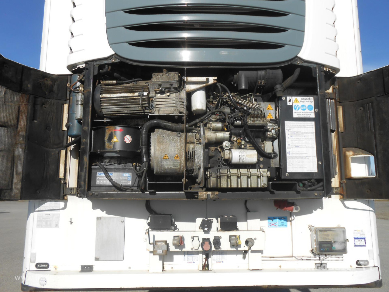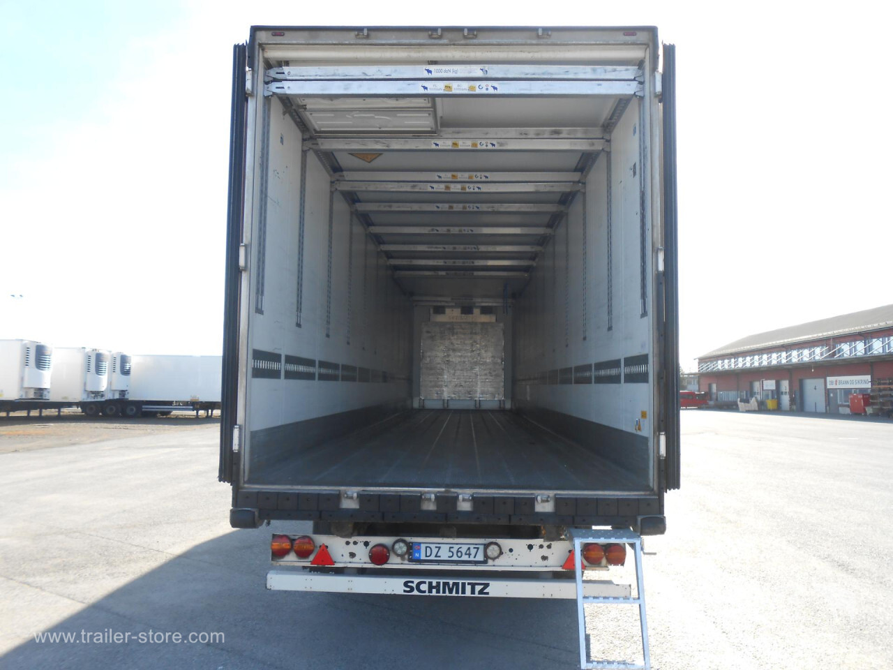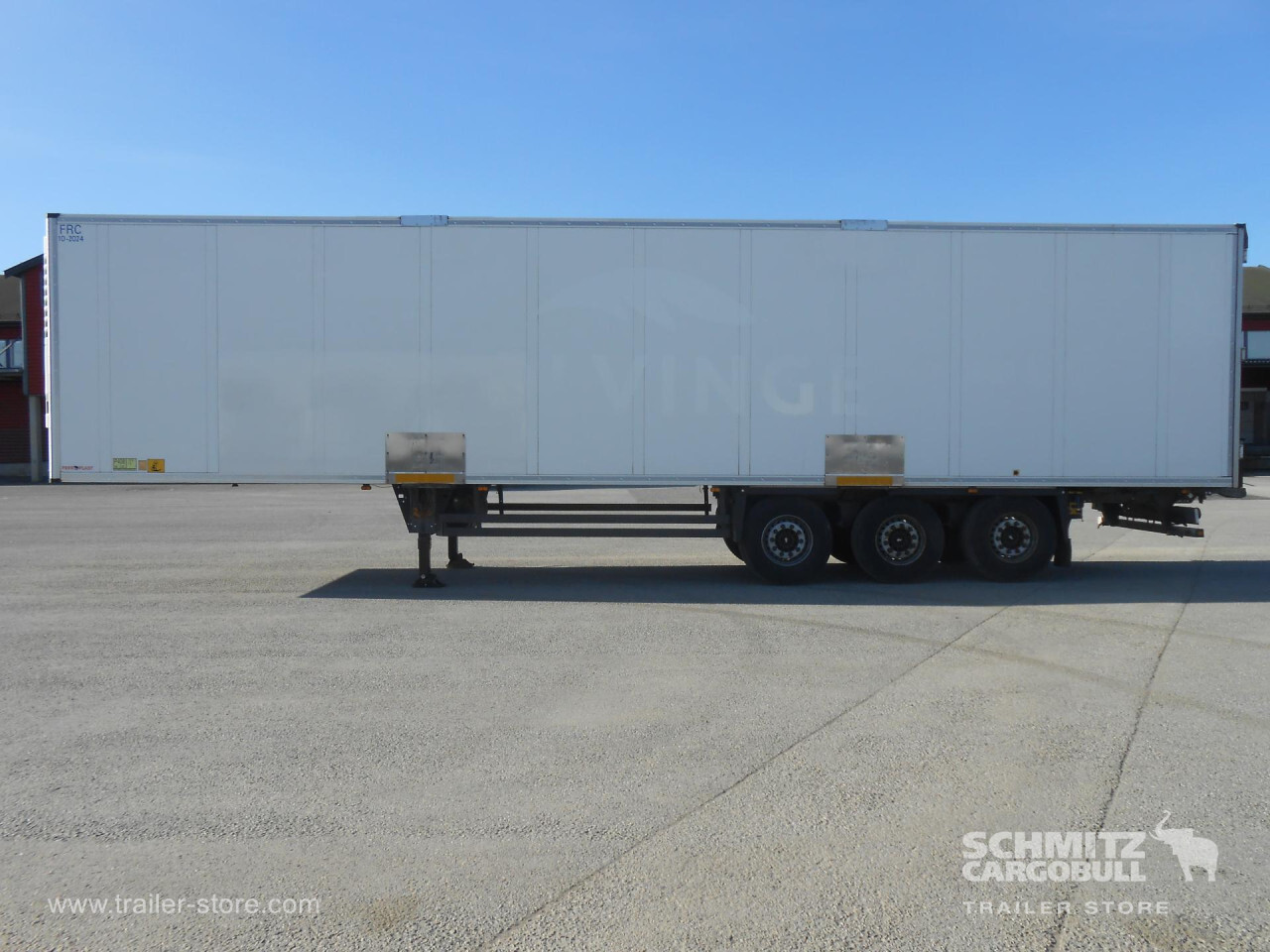 Remarks: **Safety**\\Rear underrun, Antilock Braking System ABS\\\\**Exterior**\\Air suspension, 1x15 and 2x7 pin plug, Antispray\\\\**Cooling unit**\\Schmitz Cargobull, 14.329 Operating hours Diesel, 64 Operating hours electric\\\\**Loading area**\\Length 13.410 mm, Width 2.490 mm, Height 2.750 mm, Volume 91 m³\\\\**Tyre sizes**\\1. Achse: 385/65 R22.5 , Tread depth: 13 mm / 13 mm, 2. Achse: 385/65 R22.5 , Tread depth: 9 mm / 9 mm, 3. Achse: 385/65 R22.5 , Tread depth: 1 mm / 1 mm\\\\**Other dimensions and weights**\\Wheel base: 8.100 mm\\\\----Schmitz Cooling unit415 external 275 internal height18t King pin810 wheelbaseMOT/PKK 28.8.25