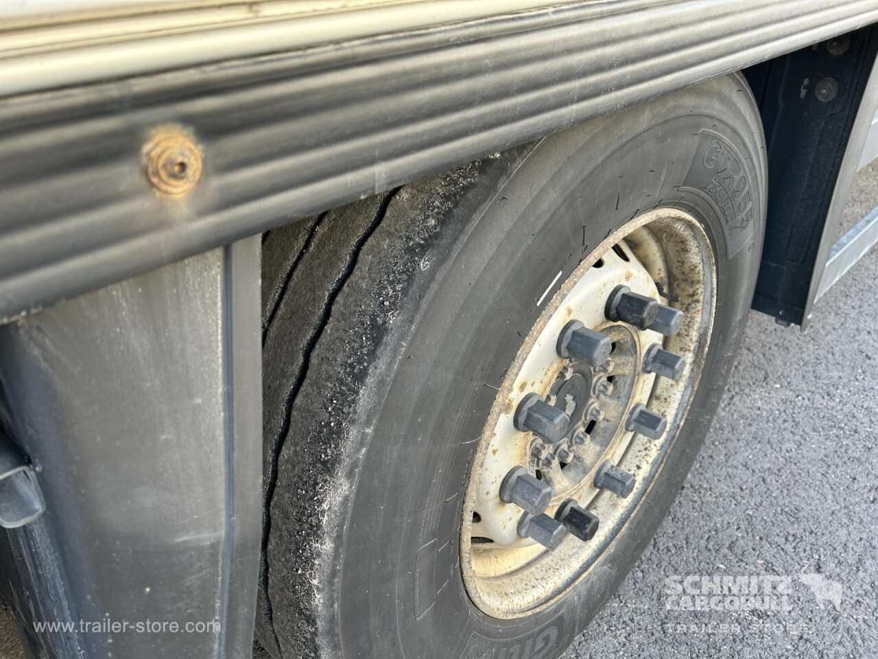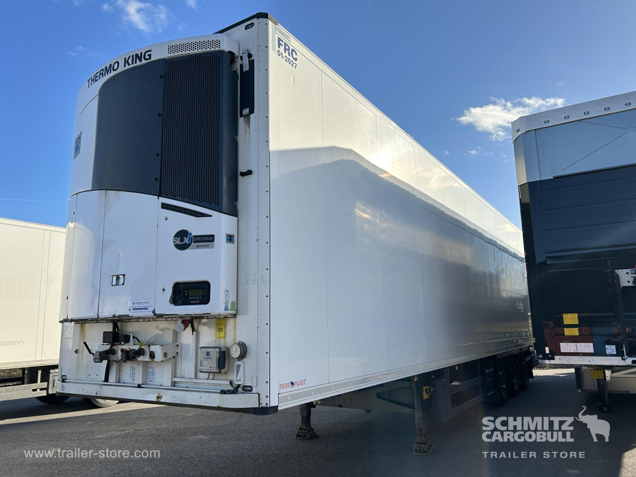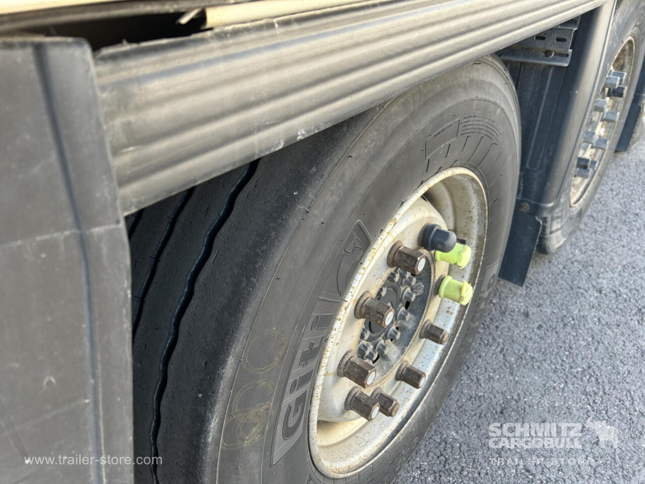 Remarks: **Safety**\\Rear underrun, Antilock Braking System ABS\\\\**Interior**\\Double deck with beams: V7 2050mm, Multifunctional floor\\\\**Exterior**\\Air suspension, Lift axle front, Toolbox, Spare wheel carrier double, Ferry lashings, 1x15 and 2x7 pin plug, Antispray, Dynamic ramp protection (DRP)\\\\**Cargo securing**\\DIN EN 12642 (code XL) certificate\\\\**Brake system**\\Disc brake, Schmitz ROTOS\\\\**Floor**\\Aluminum floor, Lashing rings in floor\\\\**Wall**\\Wall thickness45 mm\\\\**Cooling unit**\\Thermoking SLXi Spectrum, Diesel/Elektro, 8.700 Operating hours Diesel, 8.000 Operating hours electric\\\\**Loading area**\\Length 13.410 mm, Width 2.490 mm, Height 2.850 mm, Volume 95 m³\\\\**Tyre sizes**\\ 385/55 R22.5 , 385/55 R22.5 , 385/55 R22.5\\\\**Other dimensions and weights**\\Payload: 32.918 kg, GVW: 42.000 kg, Wheel base: 1.310 mm,1.310\\\\----