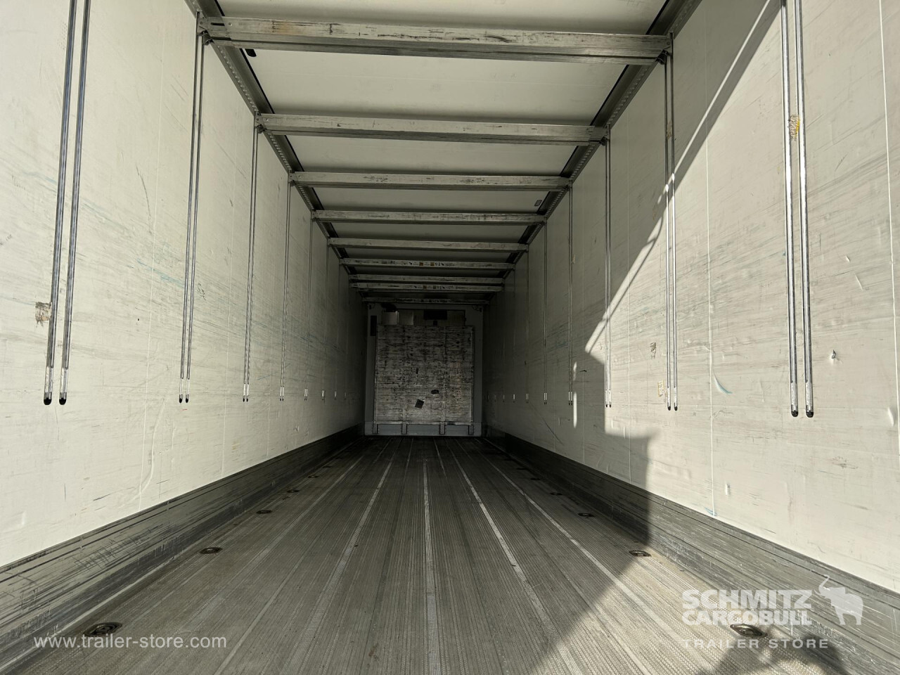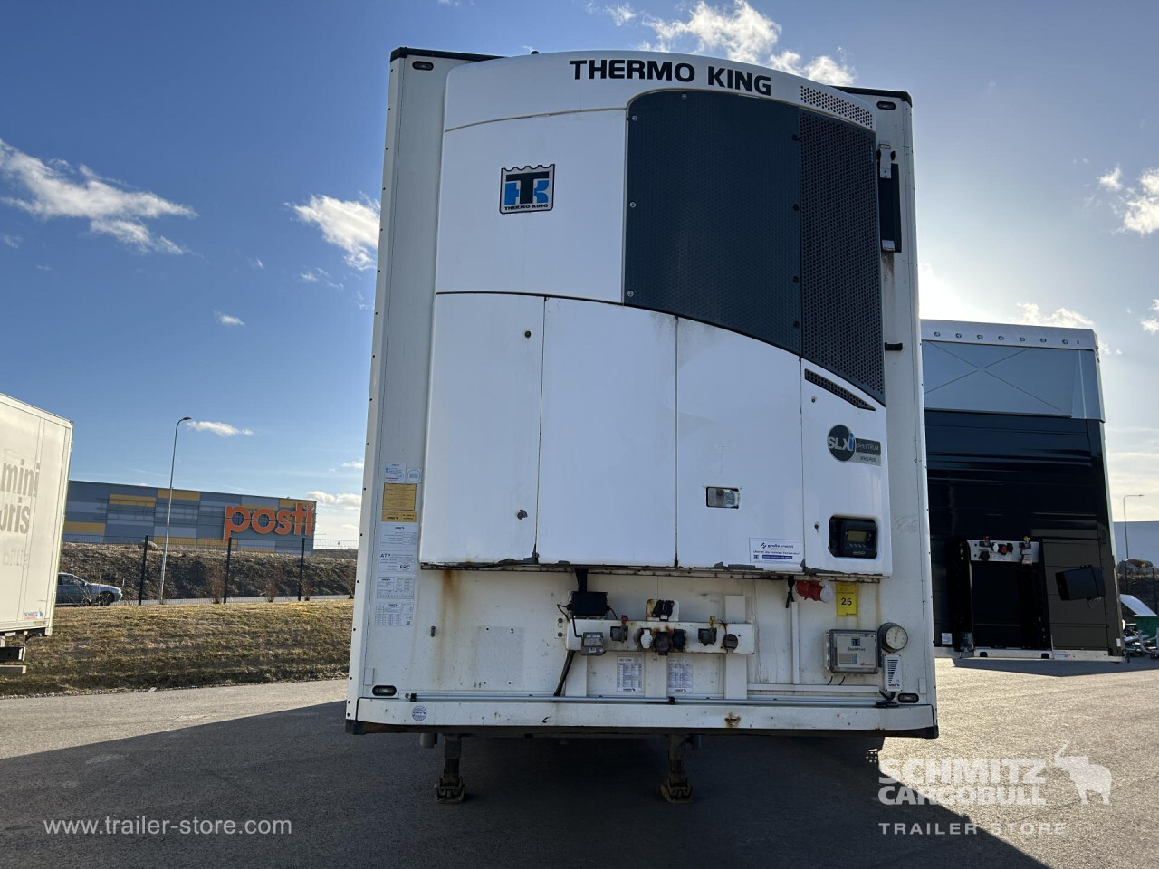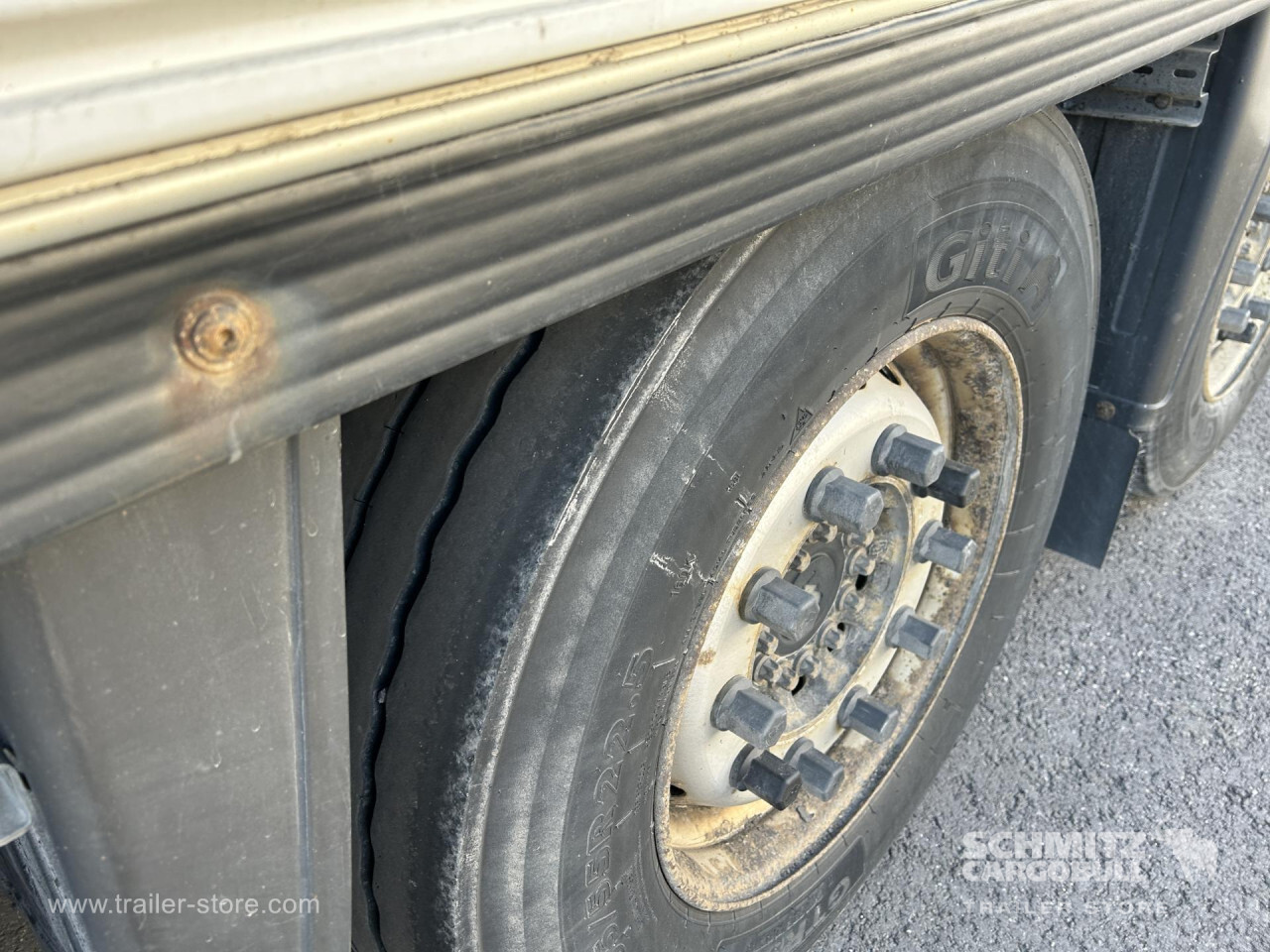 Remarks: **Safety**\\Rear underrun, Antilock Braking System ABS\\\\**Interior**\\Double deck with beams: V7 2050mm, Multifunctional floor\\\\**Exterior**\\Air suspension, Lift axle front, Toolbox, Spare wheel carrier double, Ferry lashings, 1x15 and 2x7 pin plug, Antispray, Dynamic ramp protection (DRP)\\\\**Cargo securing**\\DIN EN 12642 (code XL) certificate\\\\**Brake system**\\Disc brake, Schmitz ROTOS\\\\**Floor**\\Aluminum floor, Lashing rings in floor\\\\**Wall**\\Wall thickness45 mm\\\\**Cooling unit**\\Thermoking SLXi Spectrum, Diesel/Elektro, 8.700 Operating hours Diesel, 8.000 Operating hours electric\\\\**Loading area**\\Length 13.410 mm, Width 2.490 mm, Height 2.850 mm, Volume 95 m³\\\\**Tyre sizes**\\ 385/55 R22.5 , 385/55 R22.5 , 385/55 R22.5\\\\**Other dimensions and weights**\\Payload: 32.918 kg, GVW: 42.000 kg, Wheel base: 1.310 mm,1.310\\\\----