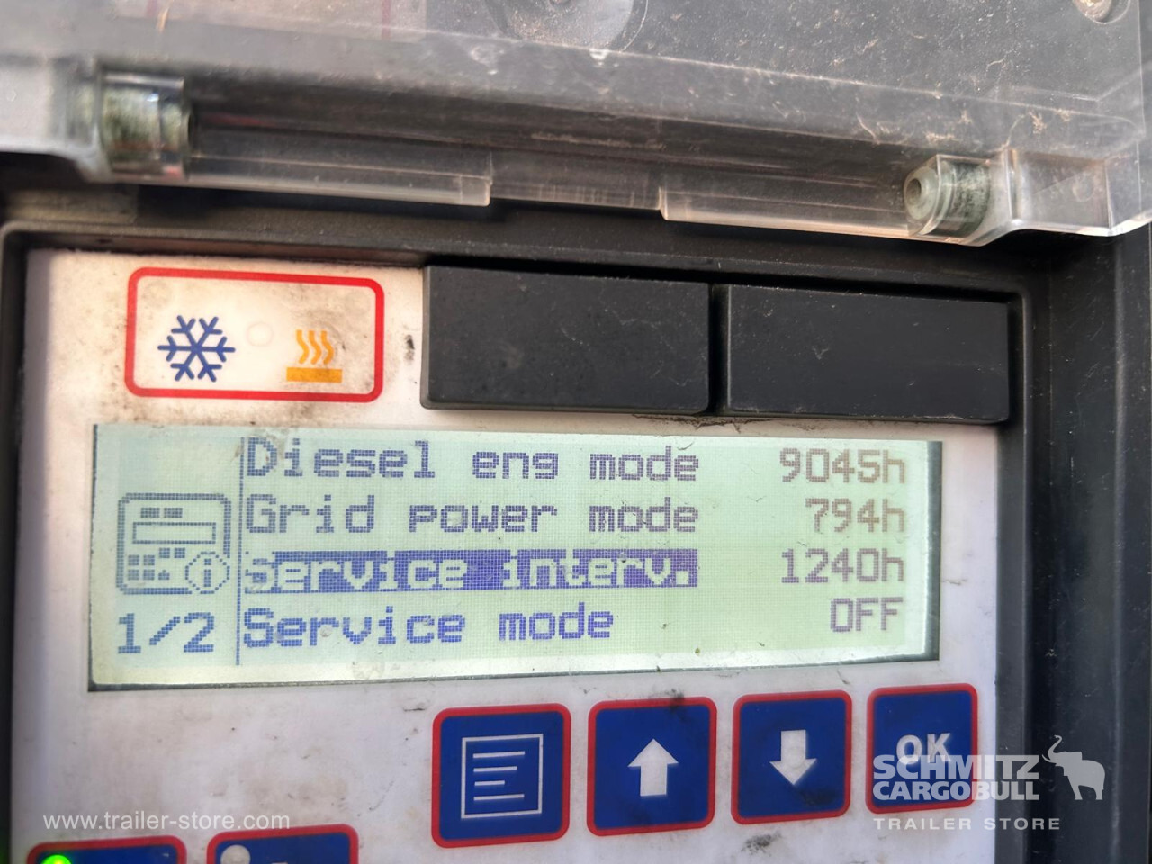 Remarks: **Safety**\\Rear underrun, Antilock Braking System ABS\\\\**Exterior**\\Air suspension, Ferry lashings, 1x15 and 2x7 pin plug, Antispray\\\\**Cargo securing**\\Load securing rail\\\\**Brake system**\\Disc brake, Schmitz ROTOS\\\\**Floor**\\Aluminum floor\\\\**Cooling unit**\\Schmitz Cargobull, Diesel/Elektro, 9.045 Operating hours Diesel\\\\**Loading area**\\Length 13.410 mm, Width 2.490 mm, Height 2.600 mm, Volume 86 m³\\\\**Tyre sizes**\\ 385/65 R22.5 , 385/65 R22.5 , 385/65 R22.5\\\\**Other dimensions and weights**\\Payload: 30.168 kg, GVW: 39.000 kg, Wheel base: 7.600 mm\\\\----