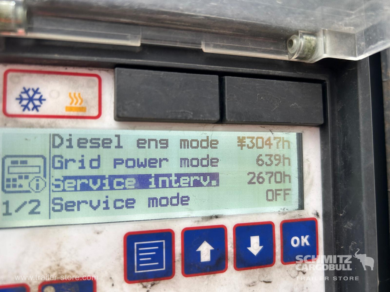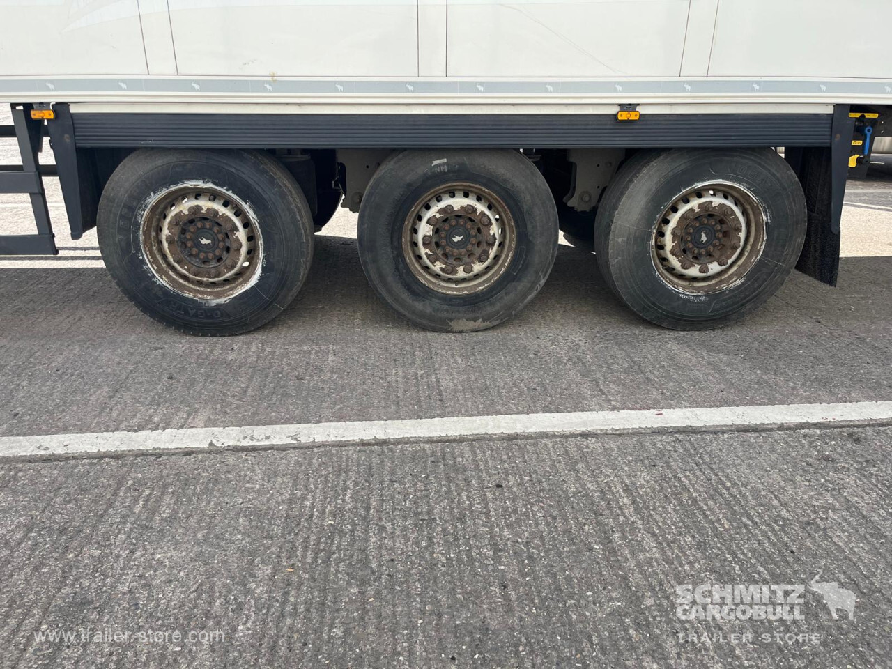 Remarks: **Safety**\\Rear underrun, Antilock Braking System ABS, Telematics system: With subscription\\\\**Exterior**\\Air suspension, Ferry lashings, 1x15 and 2x7 pin plug, Antispray\\\\**Cargo securing**\\Load securing rail\\\\**Brake system**\\Disc brake, Schmitz ROTOS\\\\**Floor**\\Aluminum floor\\\\**Cooling unit**\\Schmitz Cargobull, Diesel/Elektro, 3.047 Operating hours Diesel\\\\**Loading area**\\Length 13.410 mm, Width 2.490 mm, Height 2.600 mm, Volume 86 m³\\\\**Tyre sizes**\\ 385/65 R22.5 , 385/65 R22.5 , 385/65 R22.5\\\\**Other dimensions and weights**\\Payload: 30.168 kg, GVW: 39.000 kg, Wheel base: 7.600 mm\\\\----
