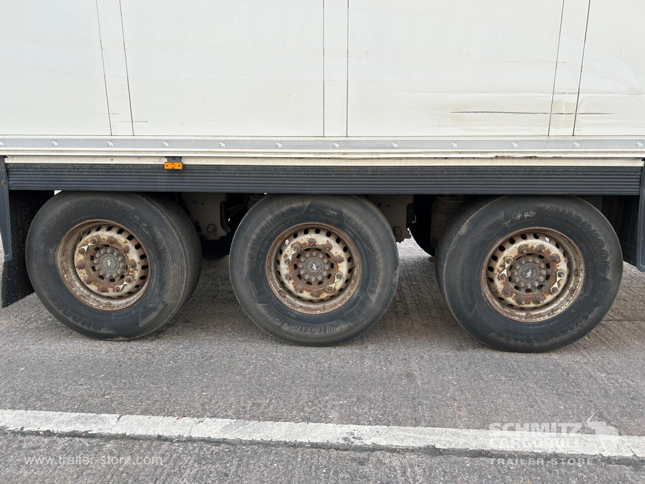**Safety**\\Rear underrun, Antilock Braking System ABS\\\\**Exterior**\\Air suspension, 1x15 and 2x7 pin plug, Antispray\\\\**Cargo securing**\\Load securing rail\\\\**Brake system**\\Disc brake, Schmitz ROTOS\\\\**Floor**\\Aluminum floor\\\\**Cooling unit**\\Schmitz Cargobull, Diesel/Elektro\\\\**Loading area**\\Length 13.410 mm, Width 2.490 mm, Height 2.600 mm, Volume 86 m³\\\\**Tyre sizes**\\ 385/65 R22.5 , 385/65 R22.5 , 385/65 R22.5\\\\**Other dimensions and weights**\\Payload: 30.168 kg, GVW: 39.000 kg, Wheel base: 7.600 mm\\\\----