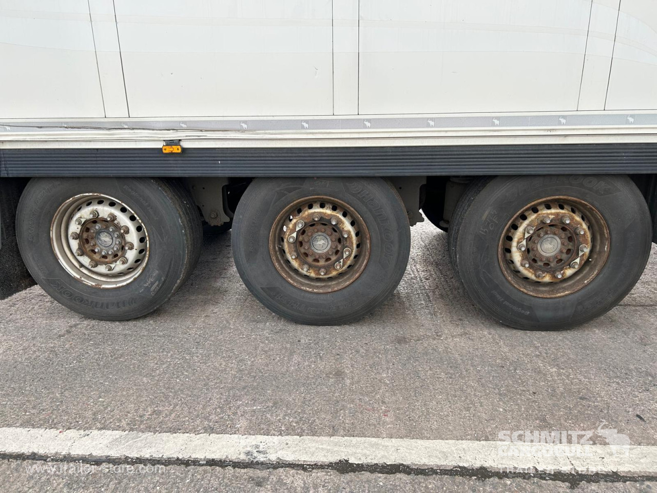 **Safety**\\Rear underrun, Antilock Braking System ABS\\\\**Exterior**\\Air suspension, 1x15 and 2x7 pin plug, Antispray\\\\**Cargo securing**\\Load securing rail\\\\**Brake system**\\Disc brake, Schmitz ROTOS\\\\**Floor**\\Aluminum floor\\\\**Cooling unit**\\Schmitz Cargobull, Diesel/Elektro\\\\**Loading area**\\Length 13.410 mm, Width 2.490 mm, Height 2.600 mm, Volume 86 m³\\\\**Tyre sizes**\\ 385/65 R22.5 , 385/65 R22.5 , 385/65 R22.5\\\\**Other dimensions and weights**\\Payload: 30.168 kg, GVW: 39.000 kg, Wheel base: 7.600 mm\\\\----