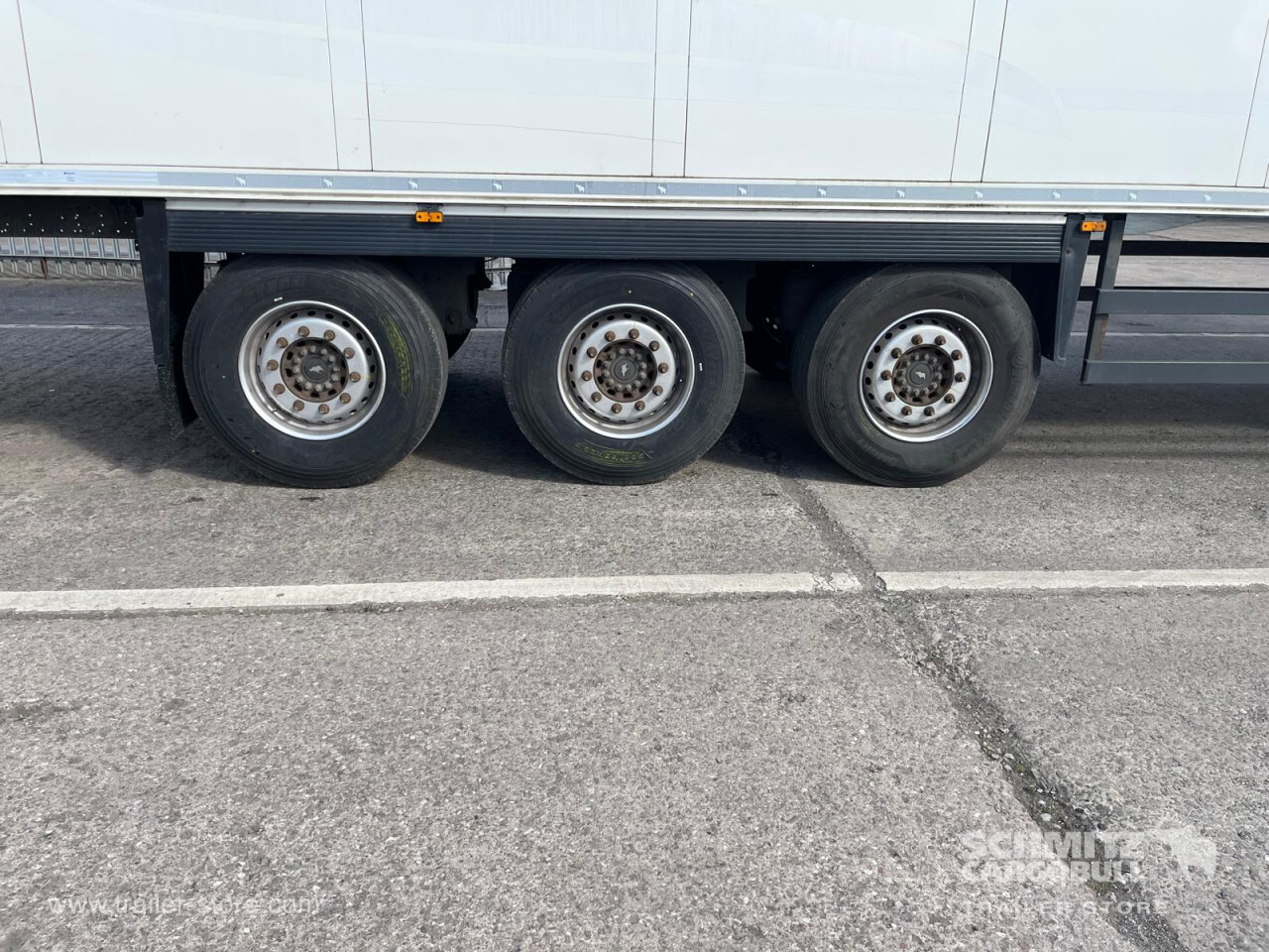**Safety**\\Rear underrun, Antilock Braking System ABS\\\\**Exterior**\\Air suspension, 1x15 and 2x7 pin plug, Antispray\\\\**Cargo securing**\\Load securing rail\\\\**Brake system**\\Disc brake, Schmitz ROTOS\\\\**Floor**\\Aluminum floor\\\\**Roof**\\Aluminum roof\\\\**Cooling unit**\\Schmitz Cargobull, Diesel/Elektro\\\\**Loading area**\\Length 13.410 mm, Width 2.490 mm, Height 2.600 mm, Volume 86 m³\\\\**Tyre sizes**\\ 385/65 R22.5 , 385/65 R22.5 , 385/65 R22.5\\\\**Other dimensions and weights**\\Payload: 30.168 kg, GVW: 39.000 kg, Wheel base: 7.600 mm\\\\----