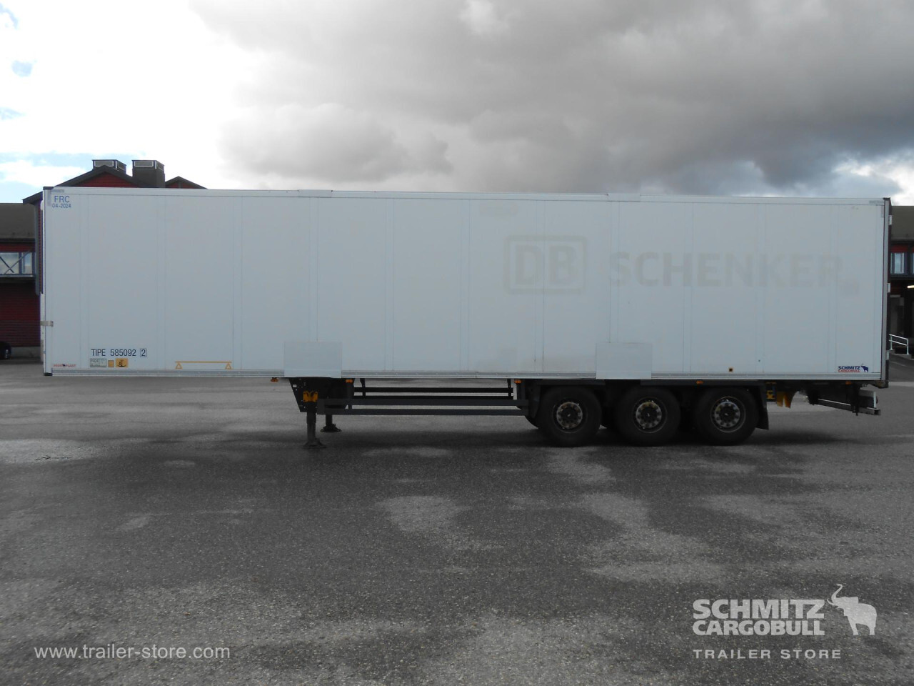 Remarks: **Safety**\\Rear underrun, Antilock Braking System ABS\\\\**Exterior**\\Air suspension, 1x15 and 2x7 pin plug, Antispray\\\\**Brake system**\\Disc brake, Schmitz ROTOS\\\\**Cooling unit**\\Thermoking, Diesel/Elektro\\\\**Loading area**\\Length 13.410 mm, Width 2.460 mm, Height 2.750 mm, Volume 90 m³\\\\**Tyre sizes**\\ 385/65 R22.5 , 385/65 R22.5 , 385/65 R22.5\\\\**Other dimensions and weights**\\Payload: 31.570 kg, GVW: 42.000 kg, Wheel base: 8.100 mm\\\\----Thermo King cooing unit, 275 internal, 410 external height, 18t king pin, 8100mm wheelbaseMOT/PKK 09.07.2026Not for trainNeeds new batteryWSM00000005200494Internal ref.: 5491684