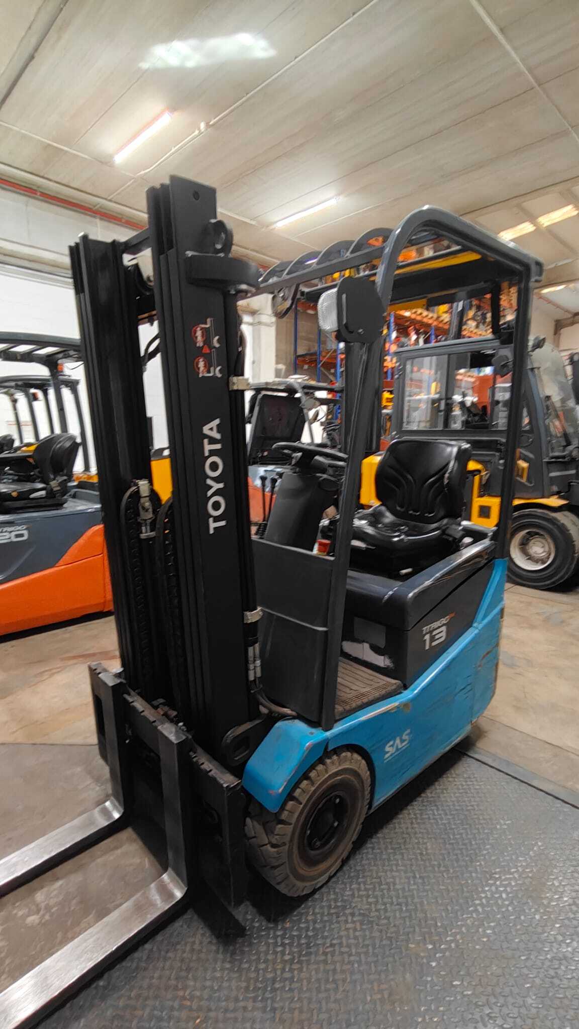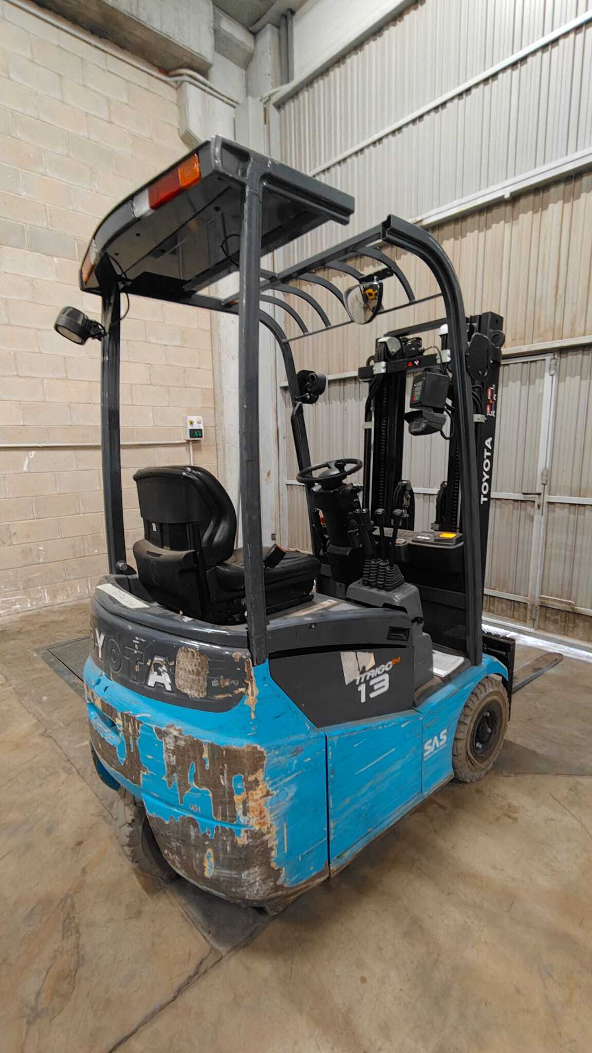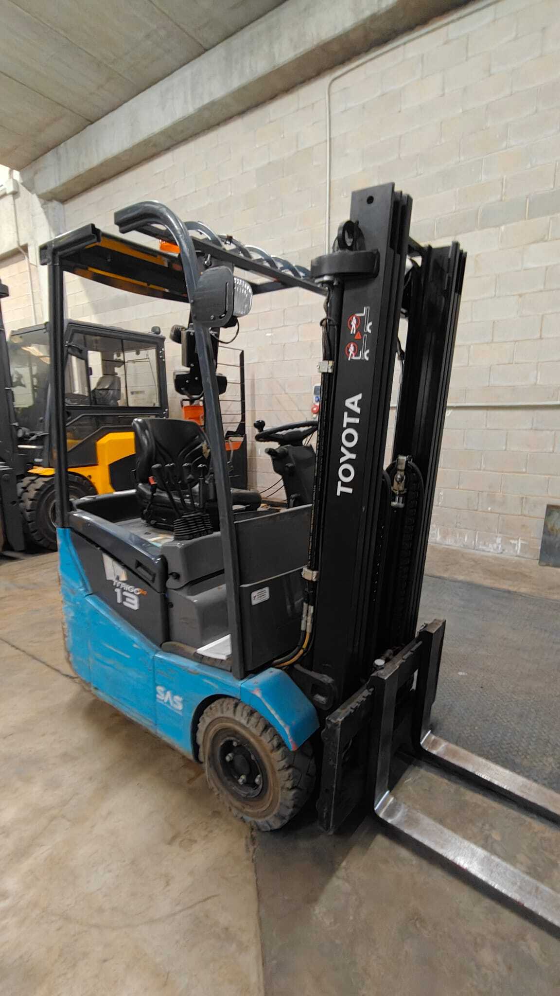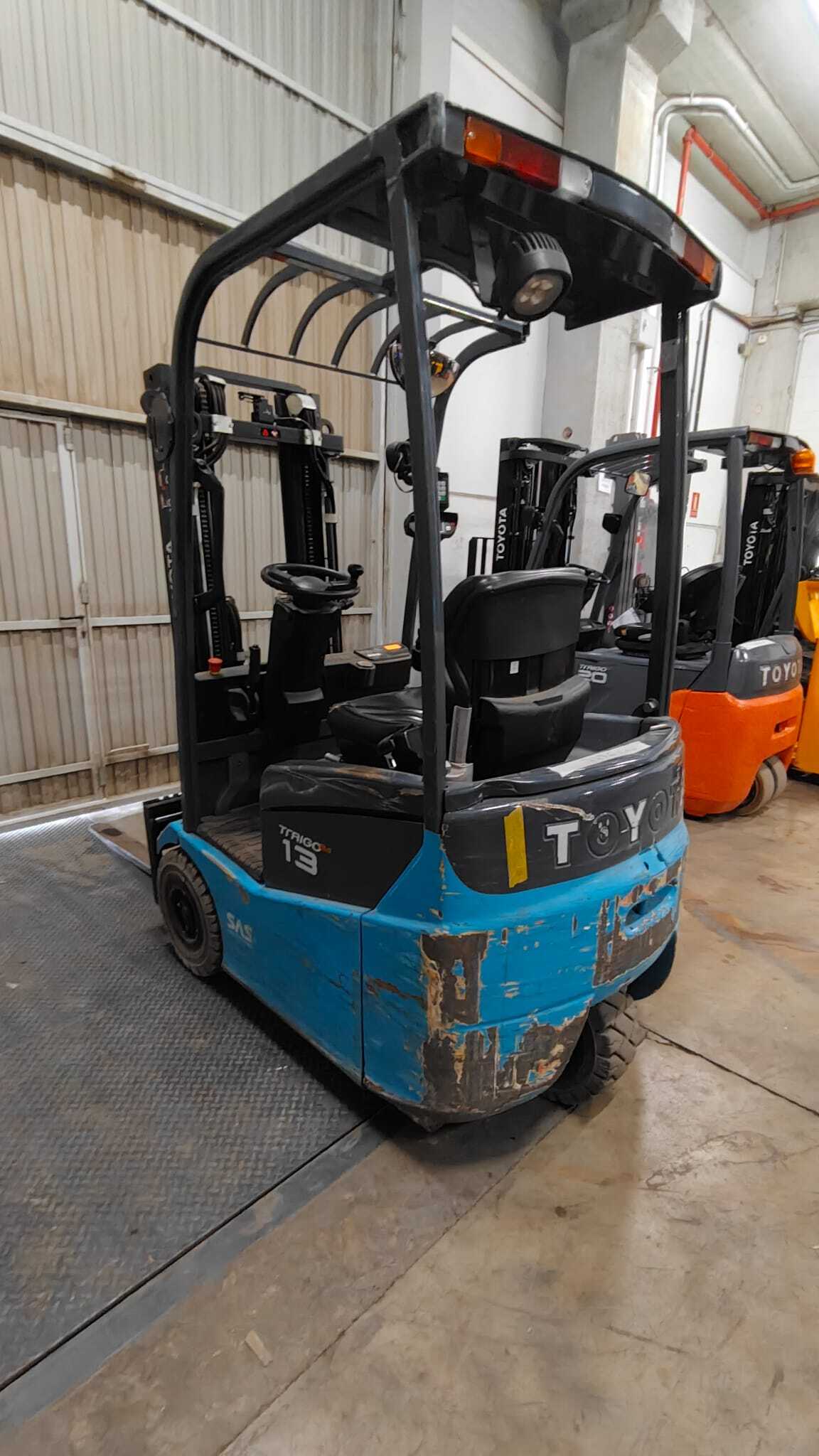 Toyota 7FBEST13 LI-ION Load capacity: 1.300 Kg Lifting height: 4.315 mm Mast: Triplex Fork: Build height: 1.960 mm Motorization: Electric Battery: 24v Charger: 24 v Good condition, Lithium battery, Integrated side-shift, 4 valve up to mast.