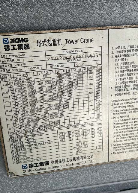 EN: CMG Official 2018 Year 20ton Construction Machinery Secondhand Building Tower Crane XL6025-20 Price