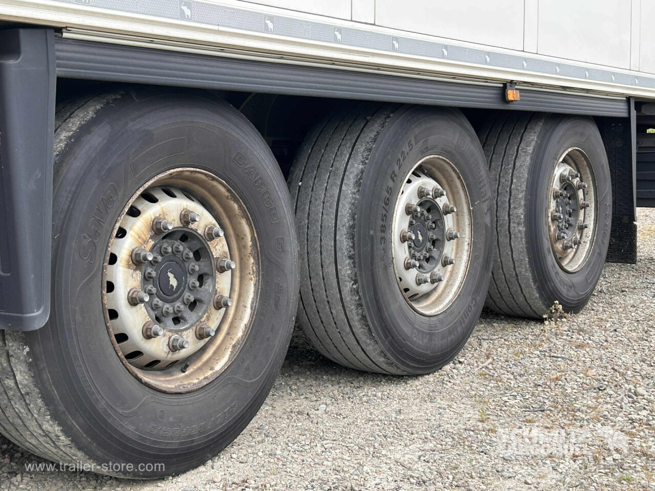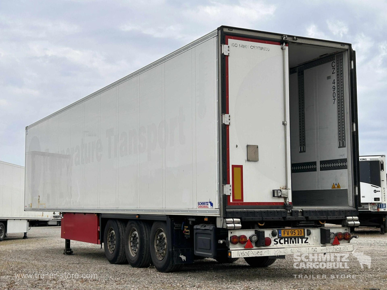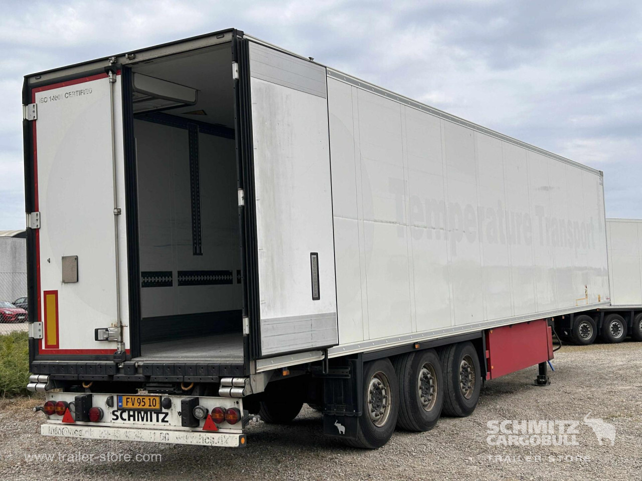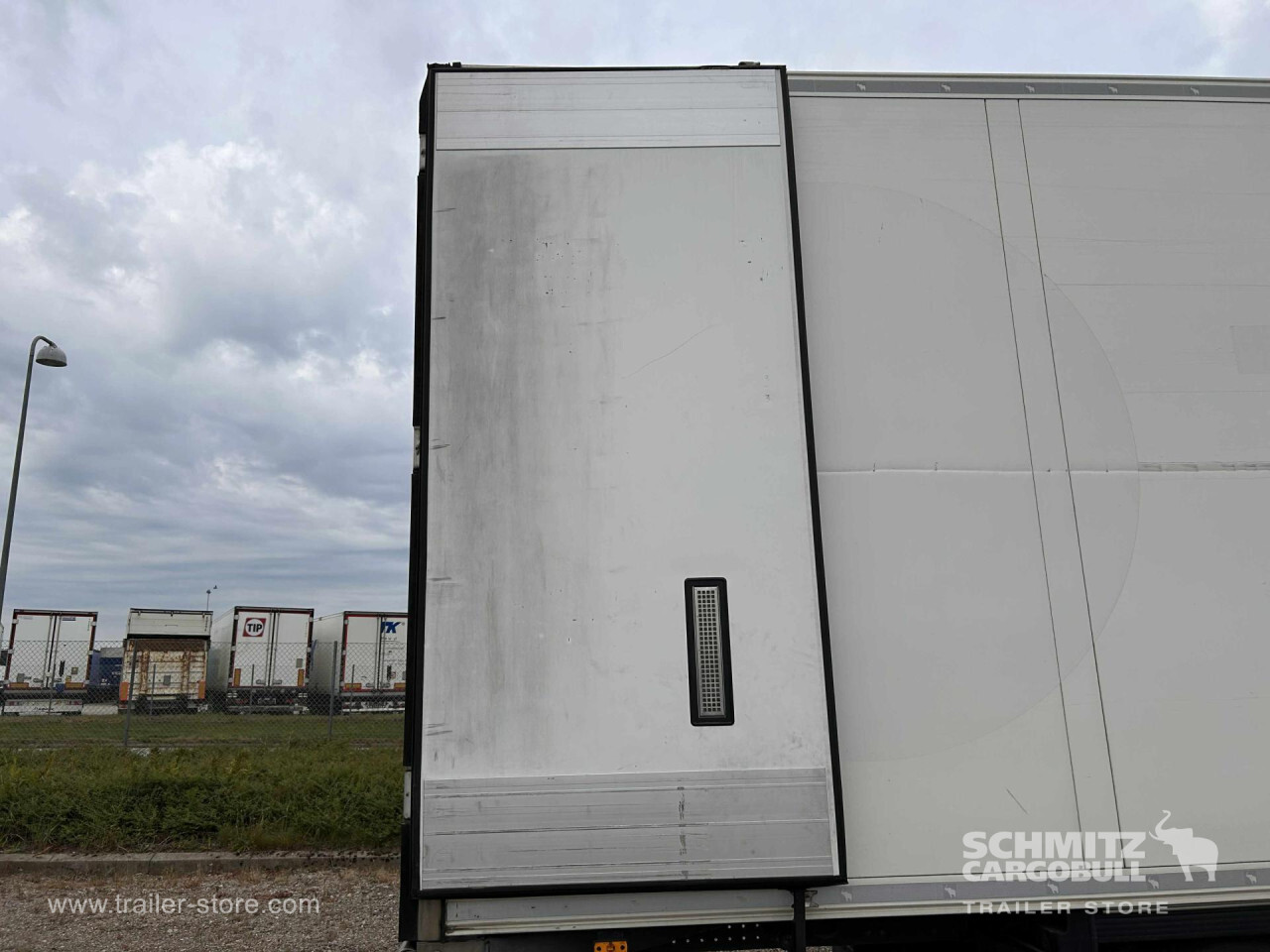 Remarks: **Safety**\\Fixed rear underrun, Antilock Braking System ABS\\\\**Interior**\\ISO partition wall without ventilators, Double deck with beams\\\\**Exterior**\\Air suspension, Pallet box (double), Ferry lashings, 1x15 and 2x7 pin plug, Antispray, Customs sealing capability\\\\**Brake system**\\Disc brake, Schmitz ROTOS\\\\**Floor**\\Aluminum floor\\\\**Cooling unit**\\Schmitz Cargobull, Diesel/Elektro, 15.596 Operating hours Diesel, 488 Operating hours electric\\\\**Loading area**\\Length 13.403 mm, Width 2.490 mm, Height 2.700 mm, Volume 90 m³\\\\**Tyre sizes**\\ 385/65 R22.5 , 385/65 R22.5 , 385/65 R22.5\\\\----