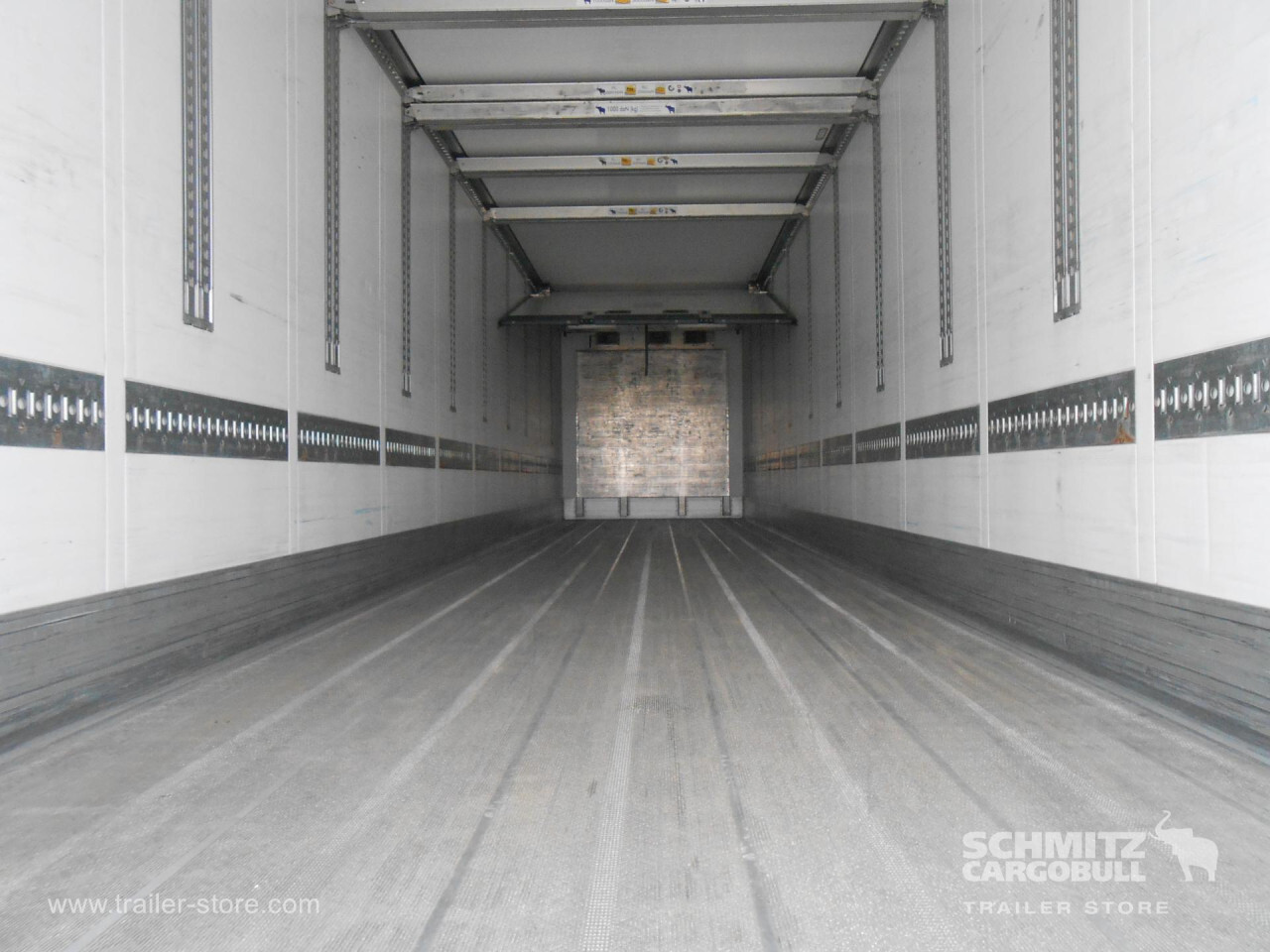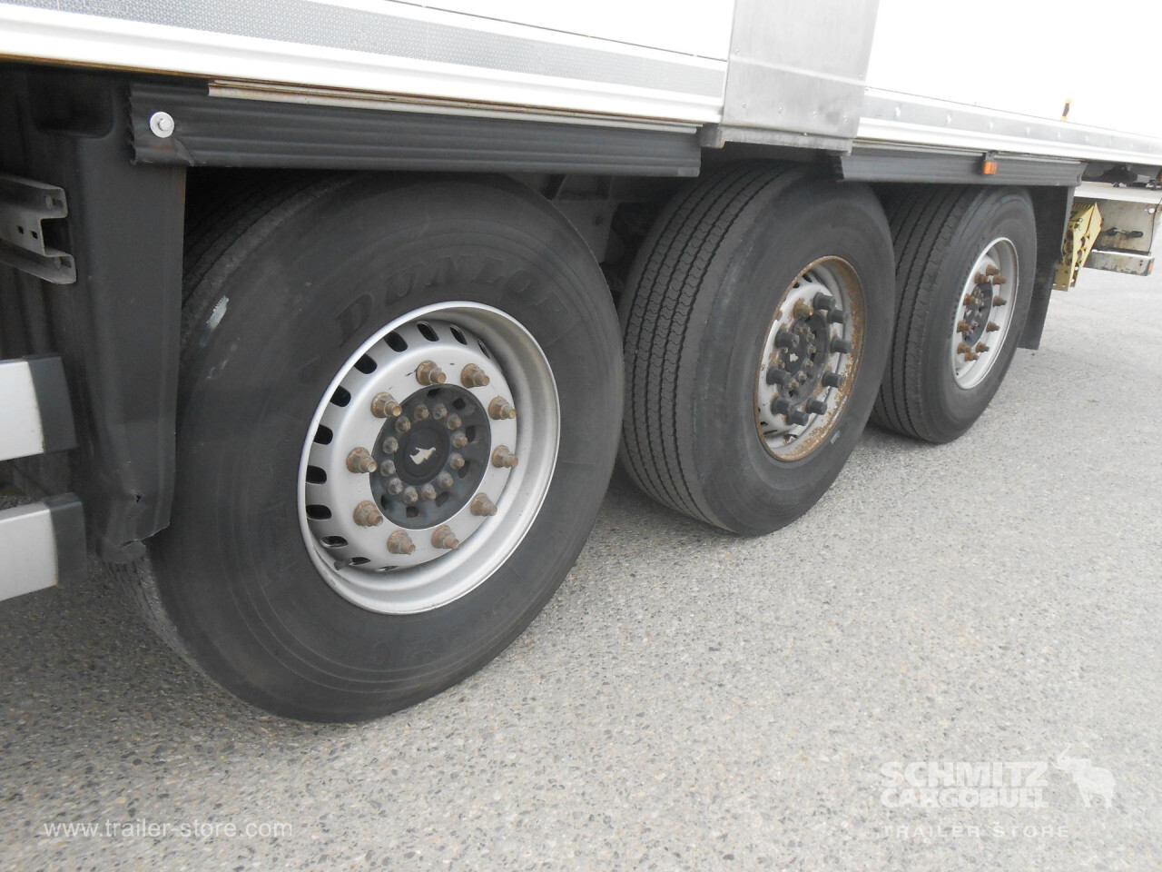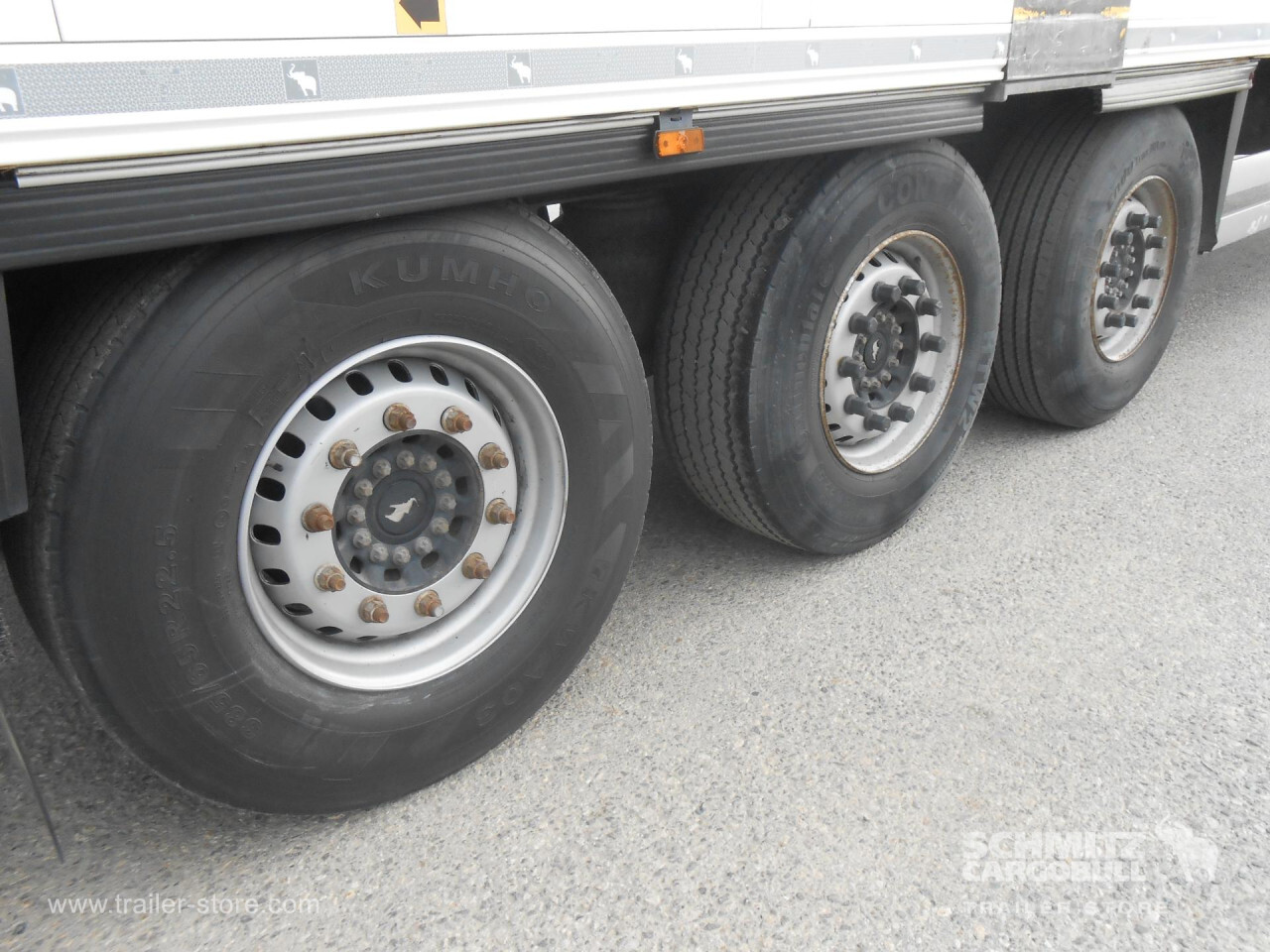 **Safety**\\Rear underrun, Antilock Braking System ABS, Telematics system\\\\**Interior**\\Temperature recorder\\\\**Exterior**\\Air suspension, 1x15 and 2x7 pin plug, Antispray\\\\**Cooling unit**\\Schmitz Cargobull S.CU V 2.0, 13.327 Operating hours Diesel, 68 Operating hours electric\\\\**Loading area**\\Length 13.403 mm, Width 2.490 mm, Height 2.700 mm, Volume 90 m³\\\\**Tyre sizes**\\ 385/65 R22.5 , 385/65 R22.5 , 385/65 R22.5\\\\**Other dimensions and weights**\\Payload: 33.007 kg, Wheel base: 8.100 mm\\\\----Schmitz Cooling UnitInternal height 27018t King pinSome scratches wear and tear. MOT/PKK 25/4/26