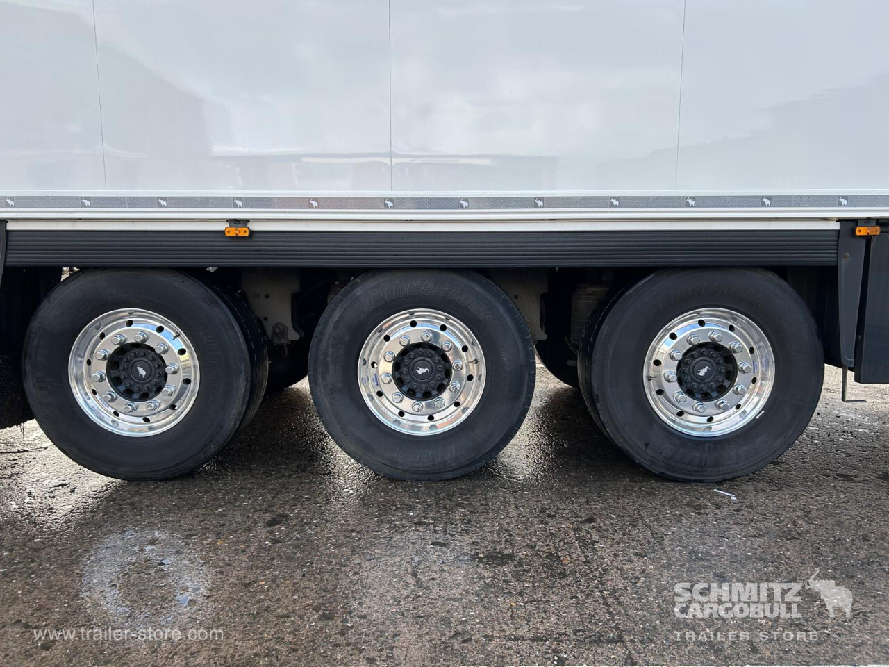 Remarks: **Safety**\\Rear underrun, Antilock Braking System ABS\\\\**Exterior**\\Air suspension, Pallet box (double), Ferry lashings, 1x15 and 2x7 pin plug, Antispray, Light alloy rims\\\\**Further equipment**\\Refurbed.New Ali wheels.New double pallet carrier.\\\\**Cargo securing**\\Load securing rail\\\\**Brake system**\\Disc brake, Schmitz ROTOS\\\\**Floor**\\Aluminum floor\\\\**Cooling unit**\\Schmitz Cargobull, Diesel/Elektro\\\\**Loading area**\\Length 13.410 mm, Width 2.490 mm, Height 2.600 mm, Volume 86 m³\\\\**Tyre sizes**\\ 385/65 R22.5 , 385/65 R22.5 , 385/65 R22.5\\\\**Other dimensions and weights**\\Payload: 29.938 kg, GVW: 39.000 kg, Wheel base: 7.600 mm\\\\----