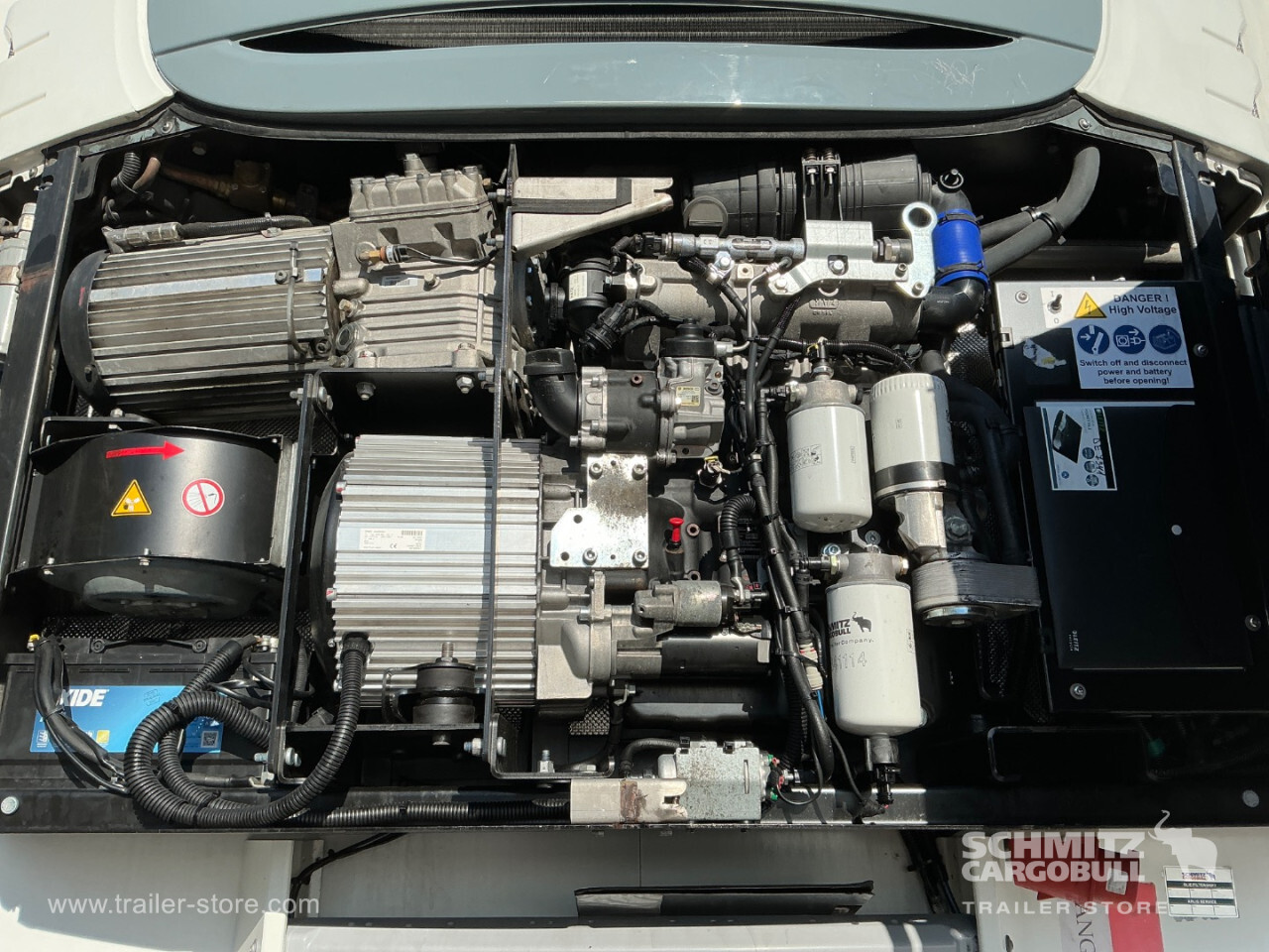 Remarks: **Safety**\\Fixed rear underrun, Antilock Braking System ABS\\\\**Interior**\\EURO meat hanging system 60 mm\\\\**Exterior**\\Air suspension, Pallet box (double), Spare wheel carrier, Ferry lashings, 1x15 and 2x7 pin plug, Antispray, Customs sealing capability\\\\**Brake system**\\Disc brake, Schmitz ROTOS\\\\**Floor**\\Aluminum floor\\\\**Cooling unit**\\Schmitz Cargobull, Diesel/Elektro, 21.102 Operating hours Diesel, 715 Operating hours electric\\\\**Loading area**\\Length 13.403 mm, Width 2.490 mm, Height 2.650 mm, Volume 88 m³\\\\**Tyre sizes**\\ 385/55 R22.5 , 385/55 R22.5 , 385/55 R22.5\\\\----