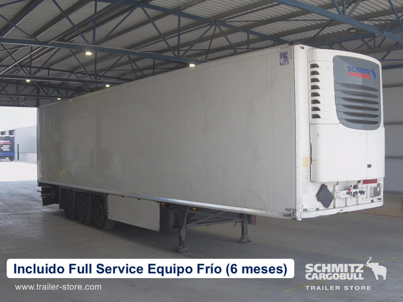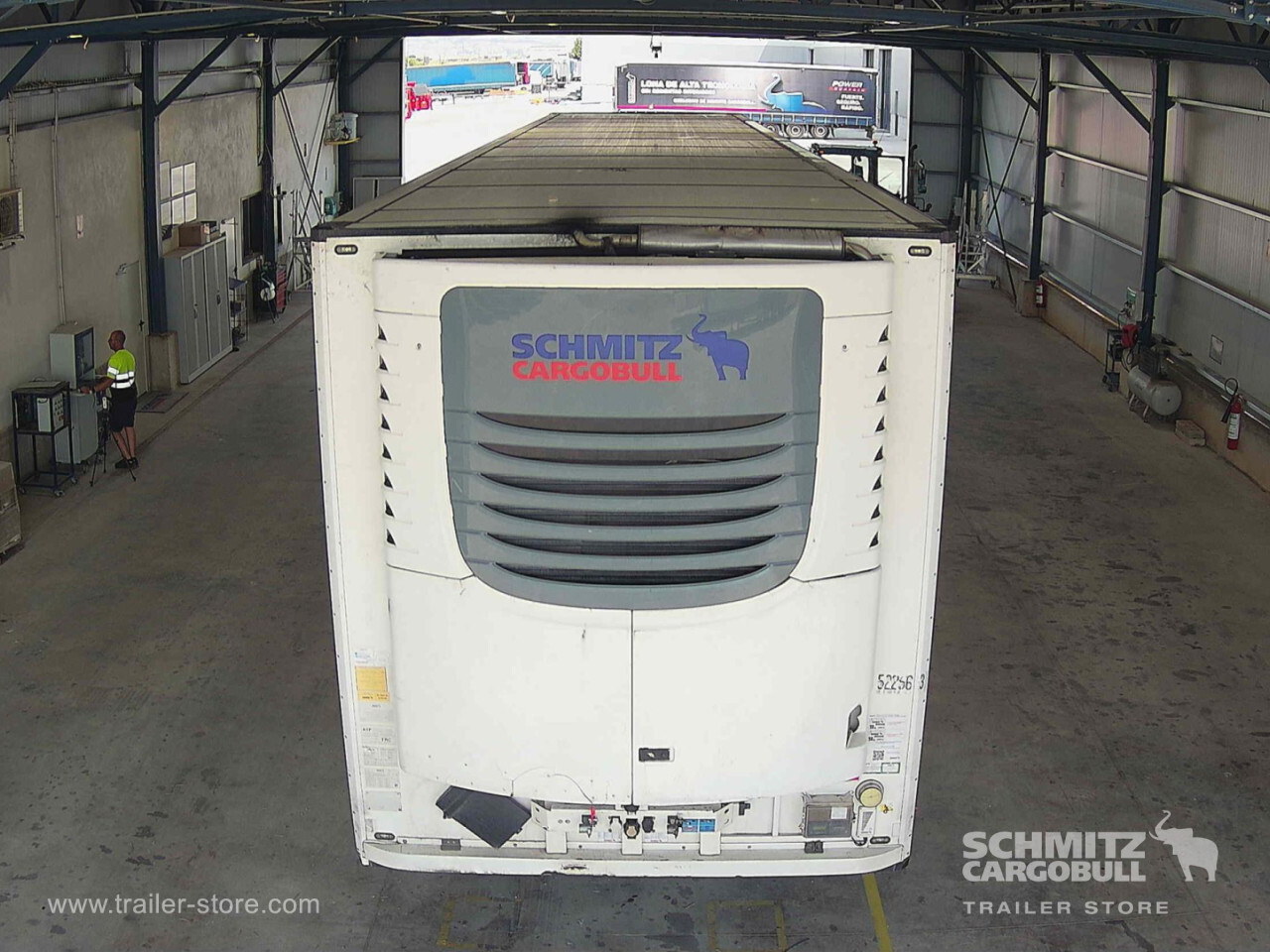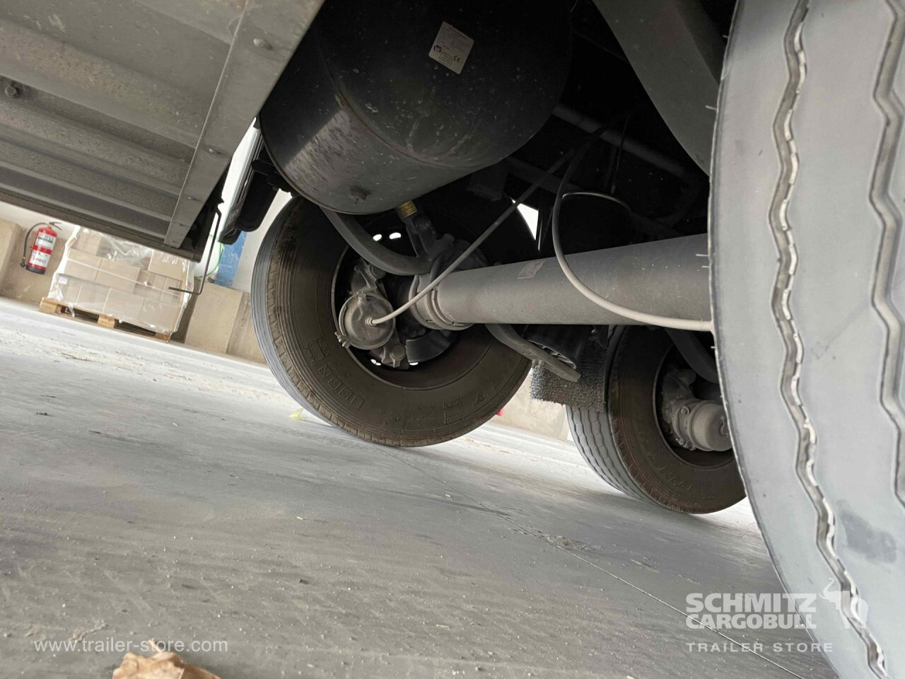 Remarks: **Safety**\\Rear underrun, Antilock Braking System ABS, Fire extinguisher holder, Hubodometer\\\\**Interior**\\Temperature recorder\\\\**Exterior**\\Air suspension, Lift axle front, Pallet box, Toolbox, Spare wheel carrier double, Bolted chassis, Gantry doors, 1x15 and 2x7 pin plug, Antispray\\\\**Cargo securing**\\Load securing rail\\\\**Brake system**\\Disc brake, Schmitz ROTOS\\\\**Floor**\\Aluminum floor\\\\**Wand**\\Stirnwand verstärkt\\\\**Wall**\\Frontwall recess for cooling\\\\**Cooling unit**\\Schmitz Cargobull S.CU mt V 2.0, Diesel/Elektro, 7.368 Operating hours Diesel, 29 Operating hours electric\\\\**Loading area**\\Length 13.410 mm, Width 2.460 mm, Height 2.700 mm, Volume 89 m³\\\\**Tyre sizes**\\1. Achse: 385/55 R22.5 , Tread depth: 8 mm / 8 mm, 2. Achse: 385/55 R22.5 , Tread depth: 11 mm / 11 mm, 3. Achse: 385/55 R22.5 , Tread depth: 8 mm / 9 mm\\\\**Other dimensions and weights**\\GVW: 35.000 kg\\\\----