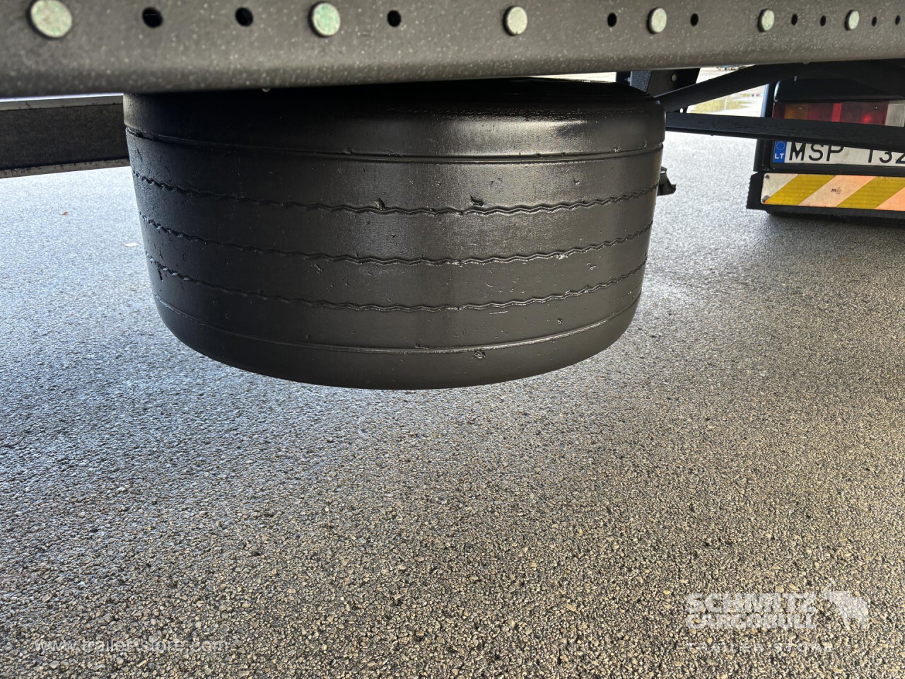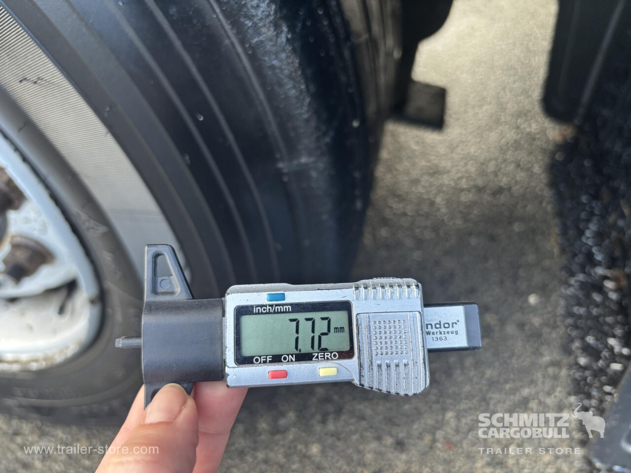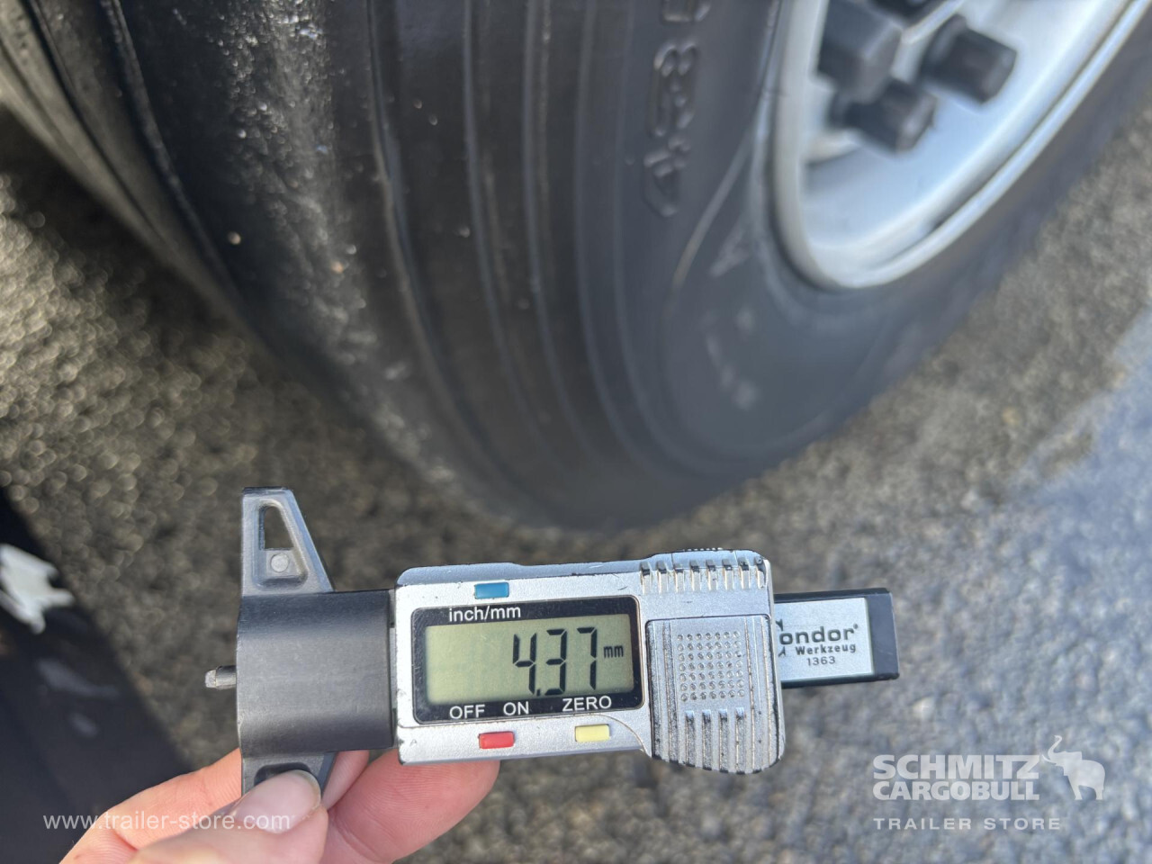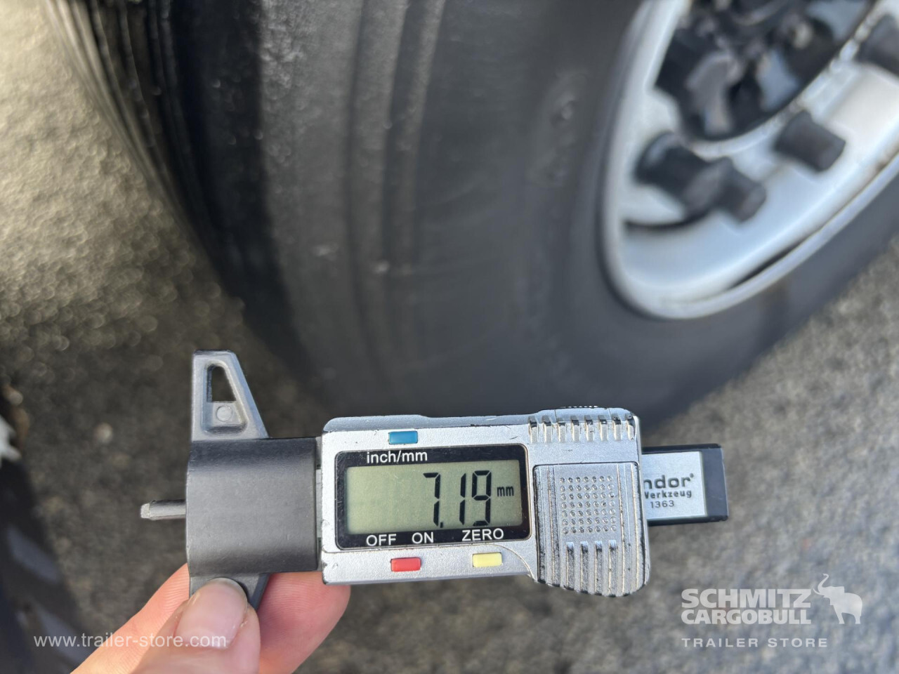 Remarks: **Safety**\\Rear underrun, Antilock Braking System ABS\\\\**Interior**\\Additional stake pockets\\\\**Exterior**\\Air suspension, Spare wheel carrier, Ferry lashings, Bolted chassis, Sliding roof, 1x15 and 2x7 pin plug, Antispray, Lifting roof (hydraulic)\\\\**Cargo securing**\\DIN EN 12642 (code XL) certificate, Aluminium slats\\\\**Brake system**\\Disc brake, Schmitz ROTOS\\\\**Loading area**\\Length 13.620 mm, Width 2.480 mm, Height 2.950 mm, Volume 99 m³\\\\**Tyre sizes**\\1. Achse: 435/50 R19.5 , Tread depth: 10 mm / 7 mm, 2. Achse: 435/50 R19.5 , Tread depth: 7 mm / 7 mm, 3. Achse: 435/50 R19.5 , Tread depth: 6 mm / 4 mm\\\\**Other dimensions and weights**\\Wheel base: 7.700 mm\\\\----