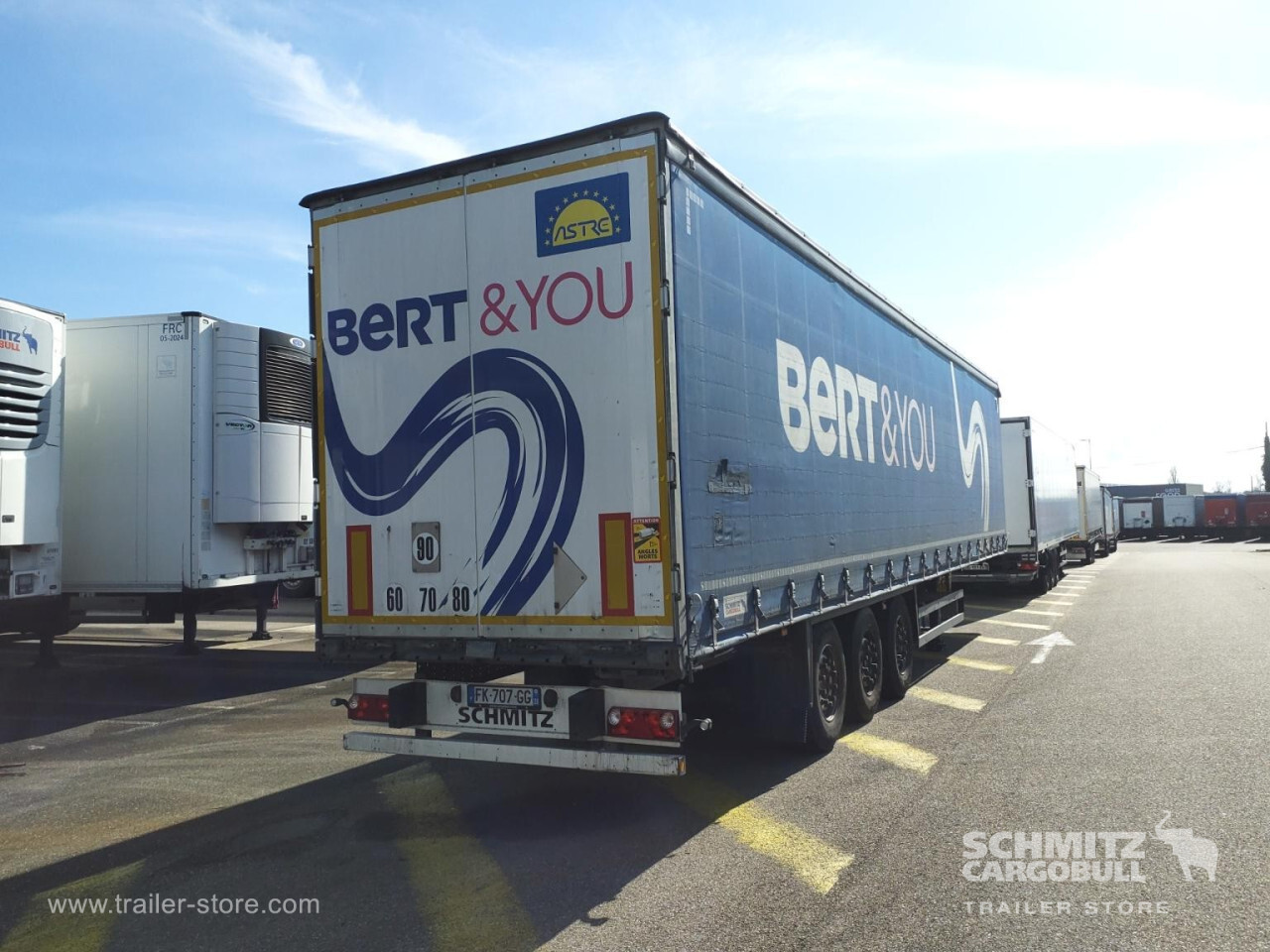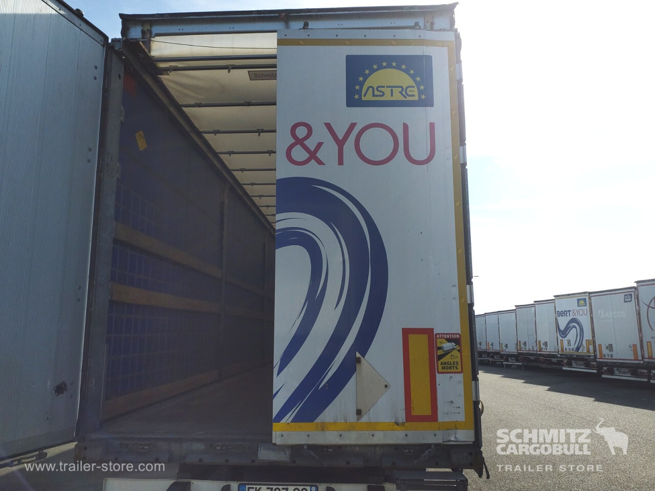 Remarks: **Safety**\\Rear underrun, Antilock Braking System ABS, Fire extinguisher holder\\\\**Exterior**\\Air suspension, Spare wheel carrier double, Ferry lashings, Bolted chassis, Sliding roof, 1x15 and 2x7 pin plug, Antispray\\\\**Cargo securing**\\Cargo securing with certificate, DIN EN 12642 (code XL) certificate\\\\**Brake system**\\Disc brake, Schmitz ROTOS\\\\**Floor**\\Wooden floor, Lashing rings in floor\\\\**Loading area**\\Length 13.620 mm, Width 2.480 mm, Height 2.780 mm, Volume 93 m³\\\\**Tyre sizes**\\1. Achse: 385/65 R22.5 , Tread depth: 8 mm / 11 mm, 2. Achse: 385/65 R22.5 , Tread depth: 7 mm / 7 mm, 3. Achse: 385/65 R22.5 , Tread depth: 9 mm / 11 mm\\\\**Other dimensions and weights**\\GVW: 38.000 kg\\\\----Disques de frein Essieu 1 42,00 mm Plaquettes de frein Essieu 1 10% usureDisques de frein Essieu 2 41,3mm Plaquettes de frein Essieu 2 10% usureDisques de frein Essieu 3 42,1mm Plaquettes de frein Essieu 3 10% usureMines 09/2026 -