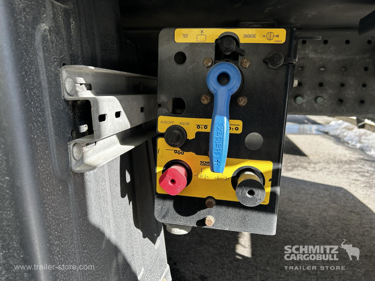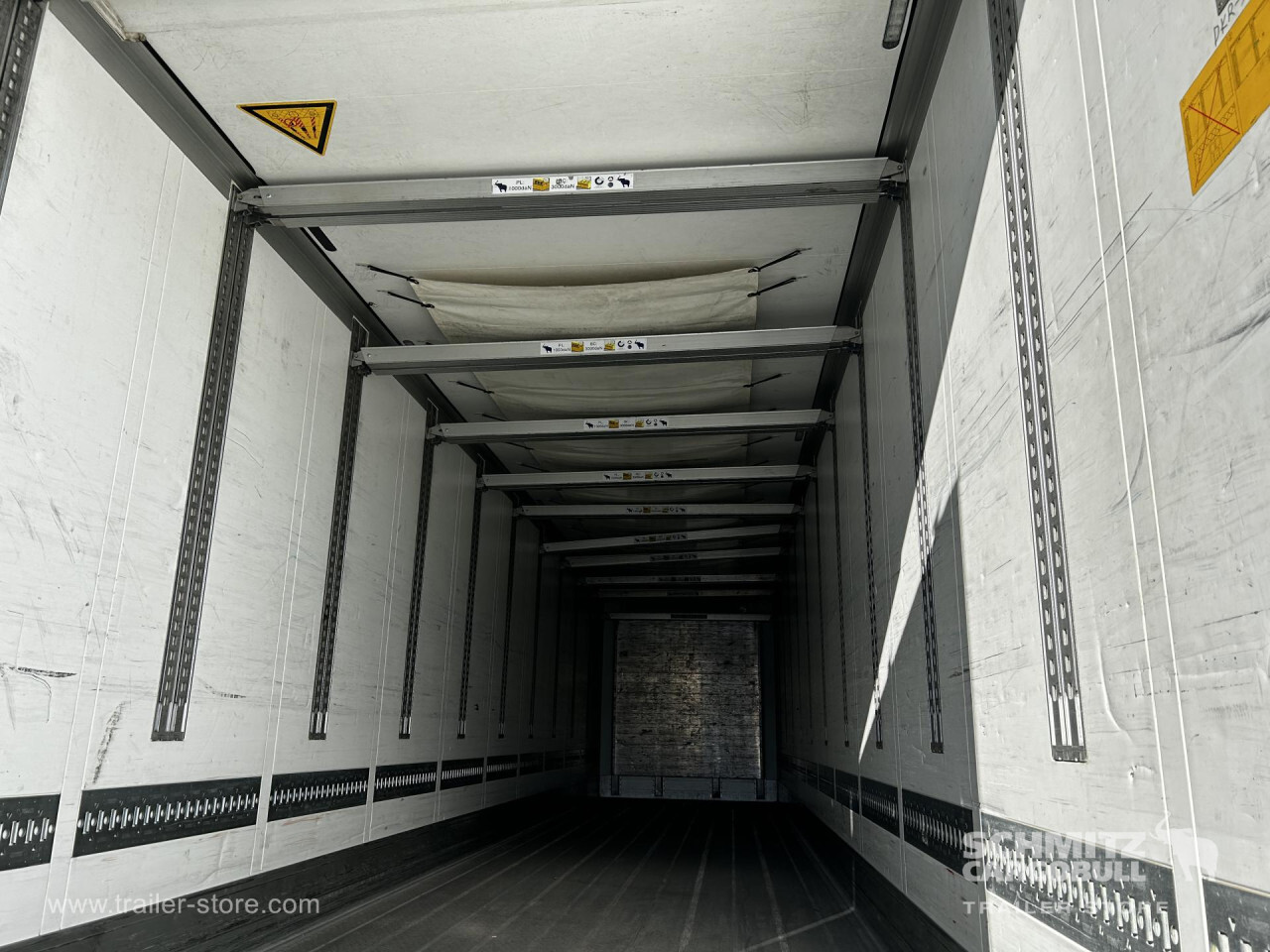 Remarks: **Safety**\\Rear underrun, Antilock Braking System ABS\\\\**Exterior**\\Air suspension, 1x15 and 2x7 pin plug, Antispray\\\\**Cargo securing**\\Load securing rail\\\\**Brake system**\\Disc brake, Schmitz ROTOS\\\\**Floor**\\Aluminum floor\\\\**Wall**\\Wall thickness45 mm\\\\**Cooling unit**\\Schmitz Cargobull S.CU mt V 2.0, Diesel/Elektro, 13.500 Operating hours Diesel\\\\**Loading area**\\Length 13.315 mm, Width 2.490 mm, Height 2.900 mm, Volume 96 m³\\\\**Tyre sizes**\\1. Achse: 385/55 R22.5 , Tread depth: 8 mm / 9 mm, 2. Achse: 385/55 R22.5 , Tread depth: 9 mm / 9 mm, 3. Achse: 385/55 R22.5 , Tread depth: 6 mm / 7 mm\\\\**Other dimensions and weights**\\Payload: 32.700 kg, GVW: 42.000 kg, Wheel base: 1.310 mm,1.310\\\\----