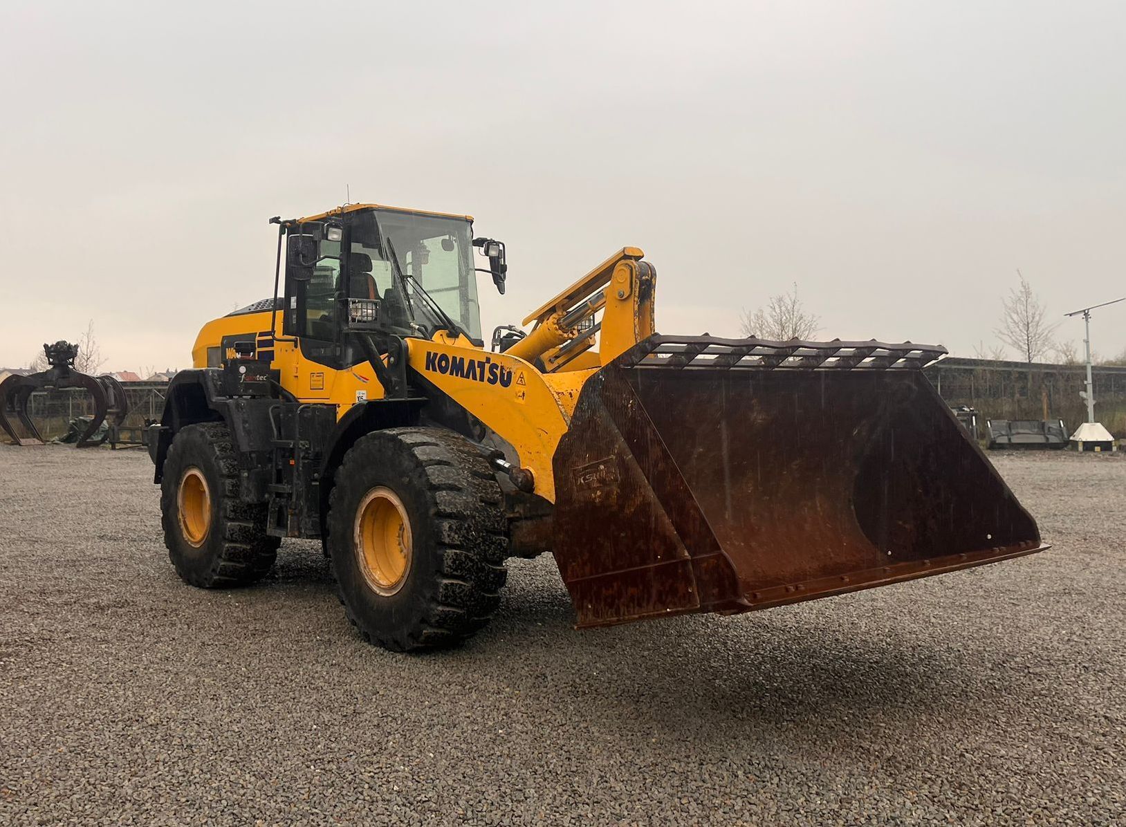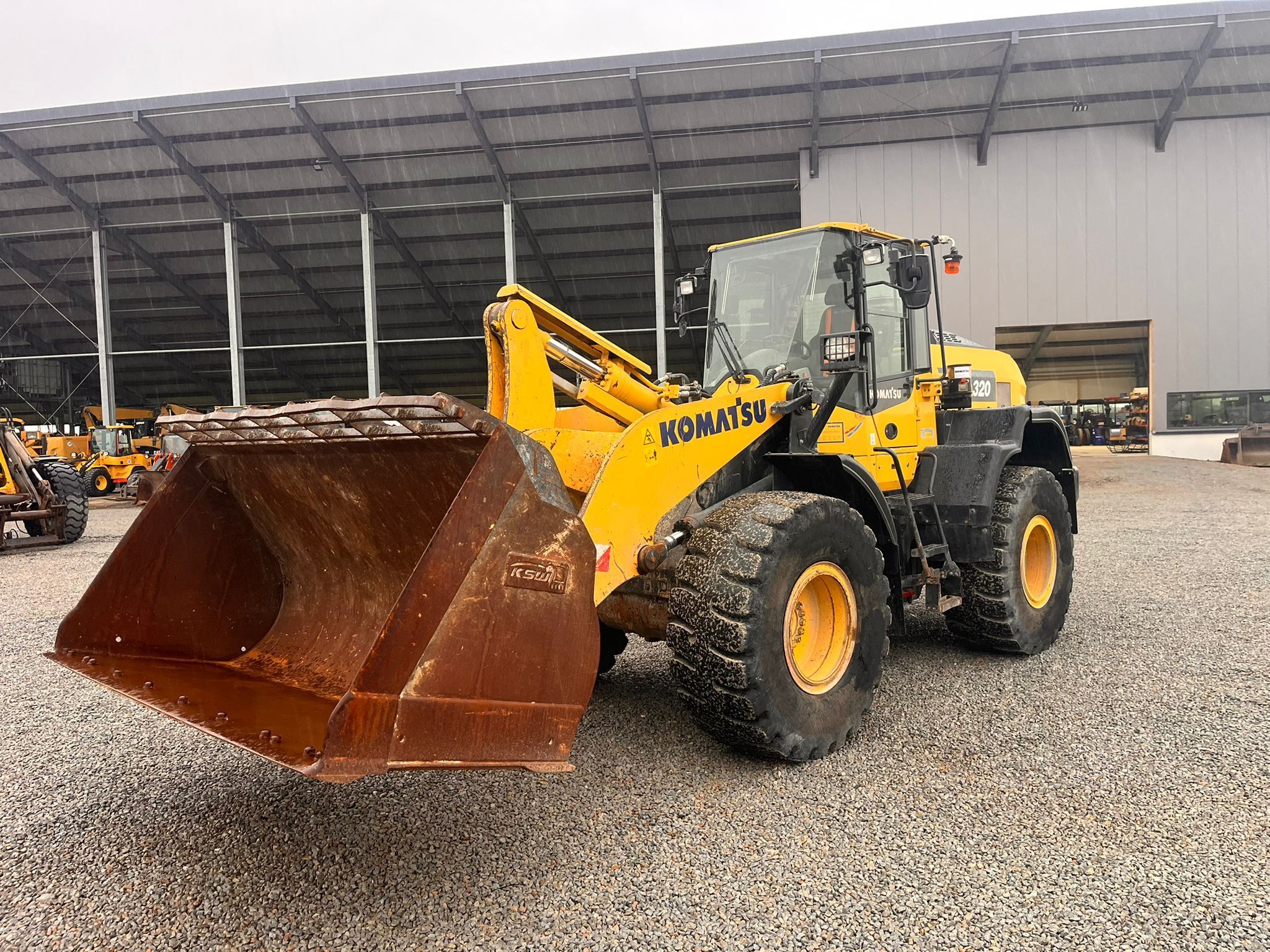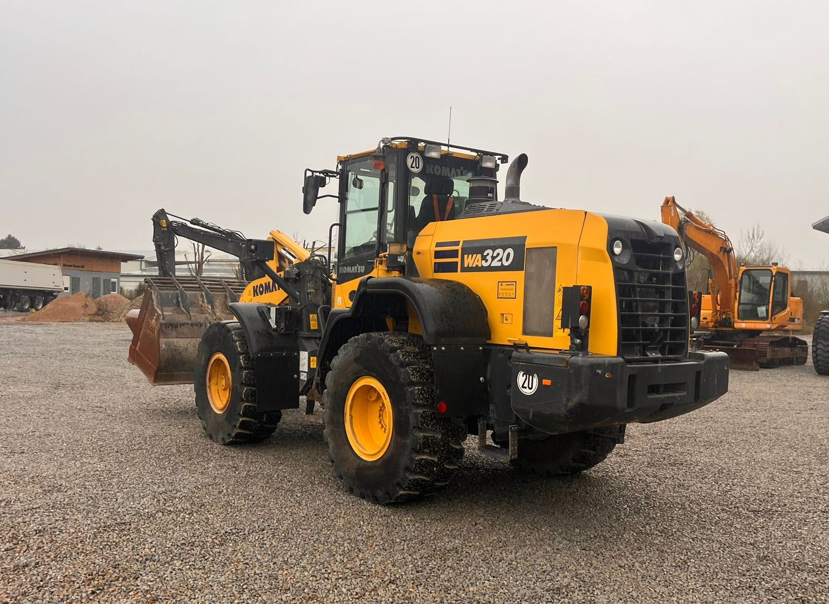 Komatsu WA320-8EO Weight around ca 16,300 kg Engine / Type Komatsu SAA6D Power / HP / KW 172 / 127 Emission standard V Tires / type / size 23.5 R25 *front in % good ca 50% good *back in % good ca 50% good Speed 20 km/h shove (capacity approx. / type) Shovel with cutting edge Aircondition Aircondition Central lubrication Central lubrication rear view camera Rear view camera CE-certificate Original CE Location Plattling, Germany Transport-dimensions L/W/H 8,380 x 2,925 x 3,390mm other details Turbo II