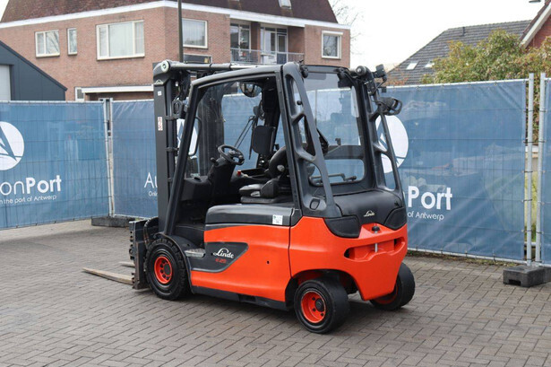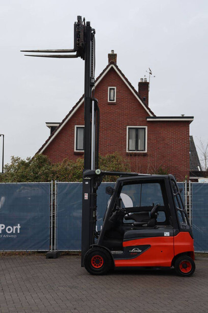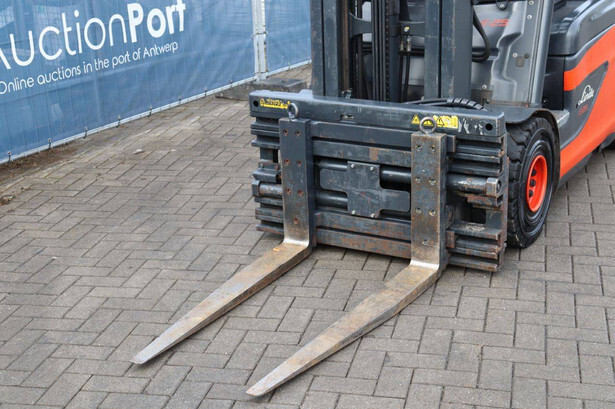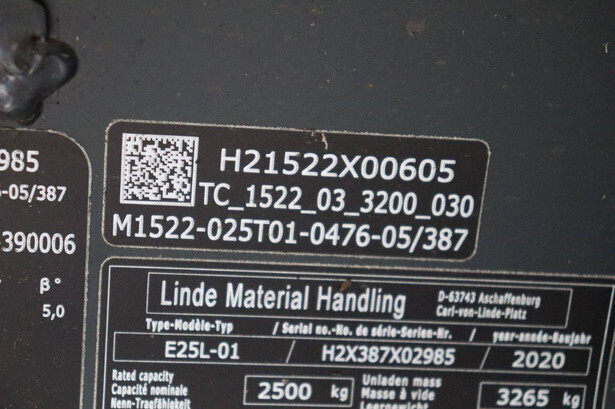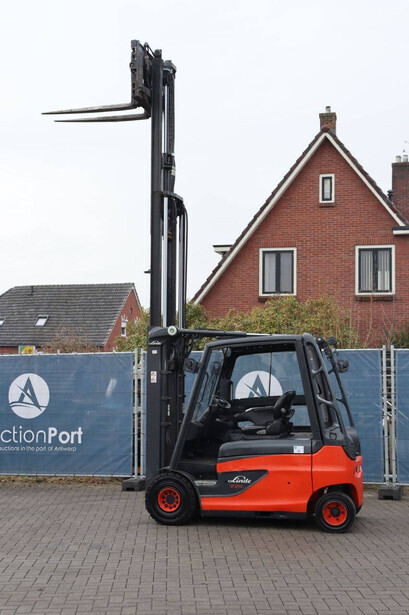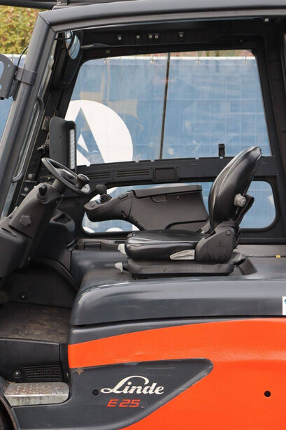 Brand: Linde Type: E25L-01 Serial number: H2X387X02985 Year of construction: 2020 Fuel: Electric Mast type: Triplex Sideshift: Yes Lifting capacity: 2500 kg Lifting height: 6000 mm Operating hours read: 5620 h Machine weight: 4796 kg Tires: Solid tires Color: orange