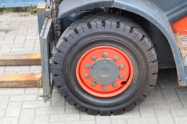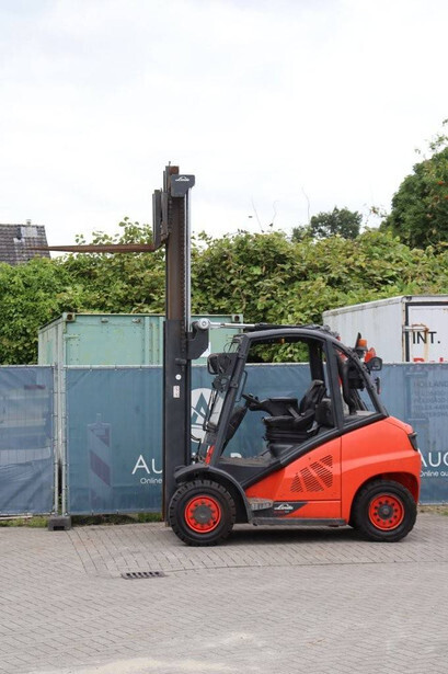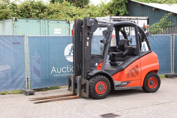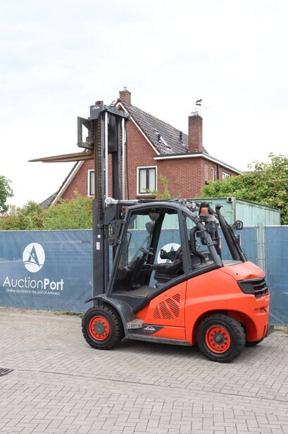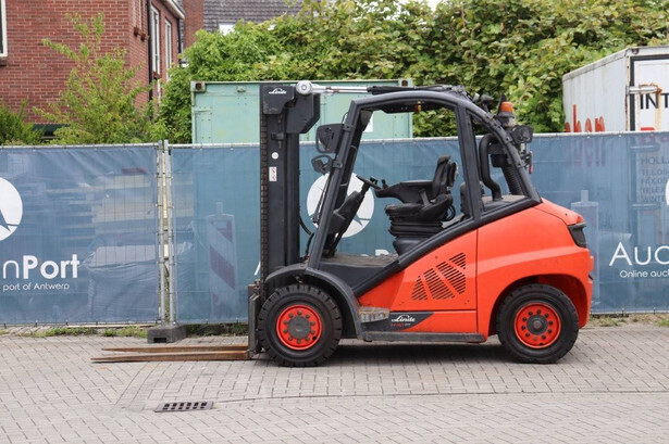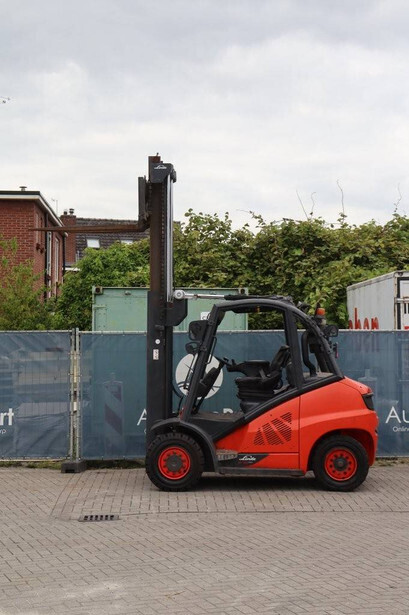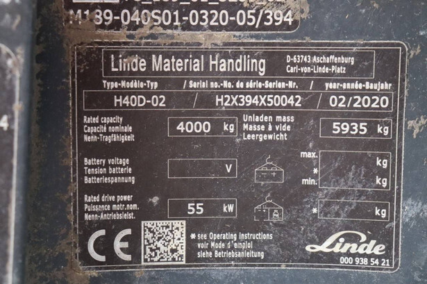 Brand: Linde Type: H40D-02 Serial number: H2X394X50042 Year of construction: 2020 Fuel: Diesel Mast type: Duplex Sideshift: No Lifting capacity: 4000 kg Lifting height: 3250 mm Reading operating hours: 1012 h Machine weight: 5935 kg Tires: Solid tires Color: orange