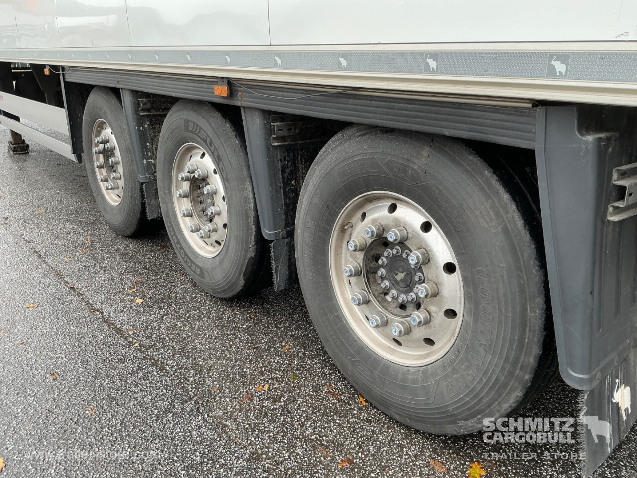 **Safety**\\Fixed rear underrun, Antilock Braking System ABS\\\\**Interior**\\Double deck without beams\\\\**Exterior**\\Air suspension, Spare wheel carrier, 1x15 and 2x7 pin plug, Antispray\\\\**Brake system**\\Disc brake, Schmitz ROTOS\\\\**Floor**\\Aluminum floor\\\\**Loading area**\\Length 13.403 mm, Height 2.650 mm\\\\**Tyre sizes**\\1. Achse: 385/65 R22.5 , Tread depth: 9 mm / 6 mm, 2. Achse: 385/65 R22.5 , Tread depth: 6 mm / 6 mm, 3. Achse: 385/65 R22.5 , Tread depth: 15 mm / 14 mm\\\\----