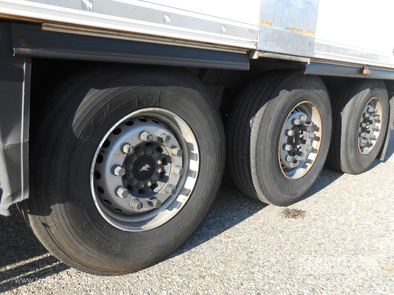 Remarks: **Safety**\\Rear underrun, Antilock Braking System ABS\\\\**Interior**\\Double deck\\\\**Exterior**\\Air suspension, Lift axle, 1x15 and 2x7 pin plug, Antispray\\\\**Cargo securing**\\Load securing rail\\\\**Brake system**\\Disc brake, Schmitz ROTOS\\\\**Cooling unit**\\Schmitz Cargobull S.CU mt V 2.0, Diesel/Elektro, 13.539 Operating hours Diesel, 310 Operating hours electric\\\\**Loading area**\\Length 13.403 mm, Width 2.490 mm, Height 2.700 mm, Volume 90 m³\\\\**Tyre sizes**\\1. Achse: 385/65 R22.5 , Tread depth: 12 mm / 11 mm, 2. Achse: 385/65 R22.5 , Tread depth: 10 mm / 9 mm, 3. Achse: 385/65 R22.5 , Tread depth: 7 mm / 6 mm\\\\**Other dimensions and weights**\\Payload: 33.007 kg, GVW: 42.000 kg, Wheel base: 8.100 mm\\\\----SKO 24/L - 13.4 FP COOL DB V7Schmitz cooling unit, multi temp, 270 internal / 410 external height, 18t king pin, 8100mm wheebase. MOT/PKK 18.03.2026