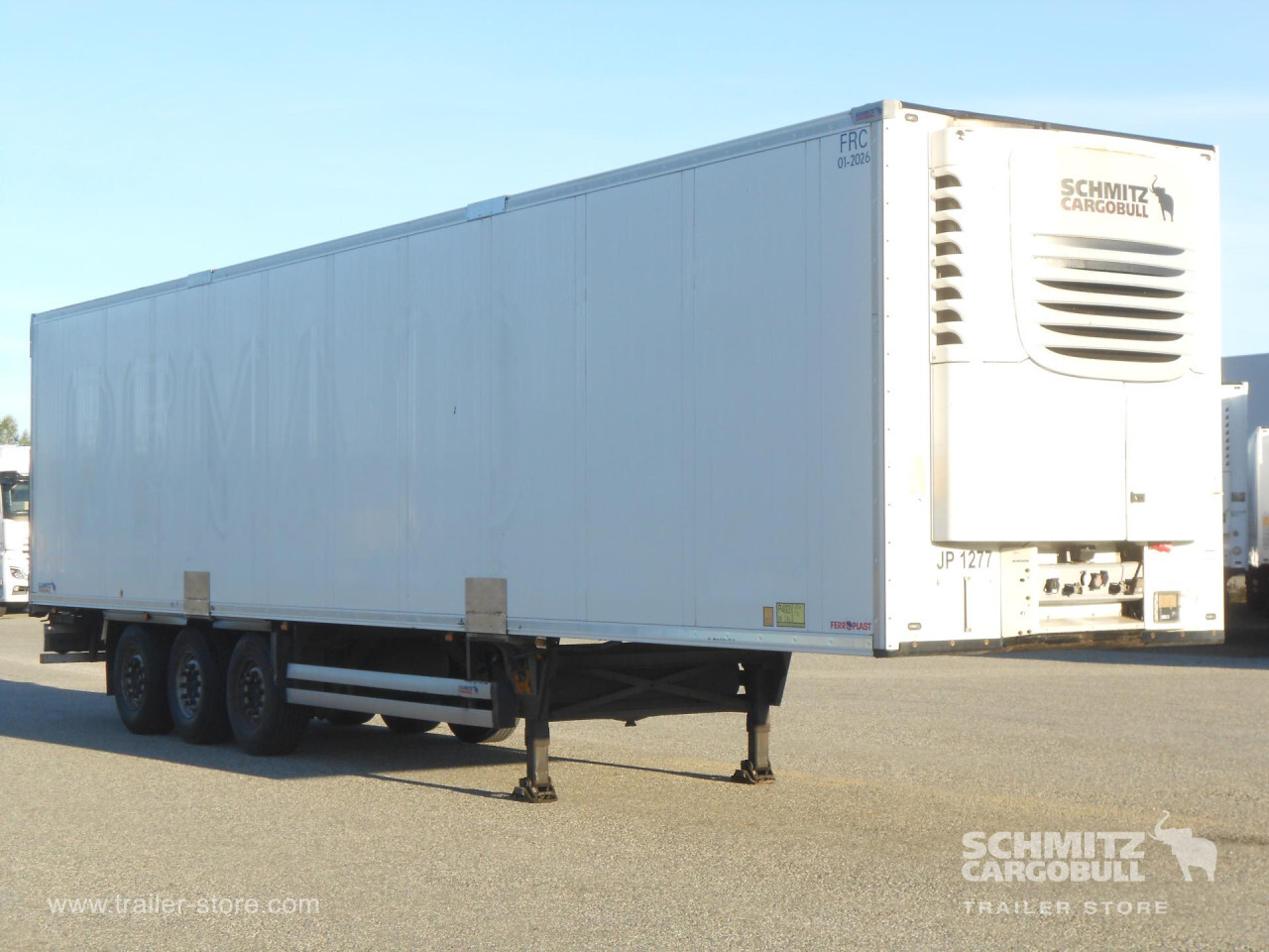 Remarks: **Safety**\\Rear underrun, Antilock Braking System ABS, Telematics system\\\\**Interior**\\Temperature recorder, Double deck\\\\**Exterior**\\Air suspension, Ferry lashings, 1x15 and 2x7 pin plug, Antispray, Hooklift\\\\**Cargo securing**\\Load securing rail\\\\**Brake system**\\Disc brake, Schmitz ROTOS\\\\**Cooling unit**\\Schmitz Cargobull S.CU mt V 2.0, Diesel/Elektro, 15.126 Operating hours Diesel, 107 Operating hours electric\\\\**Loading area**\\Length 13.403 mm, Width 2.490 mm, Height 2.700 mm, Volume 90 m³\\\\**Tyre sizes**\\1. Achse: 385/65 R22.5 , Tread depth: 9 mm / 10 mm, 2. Achse: 385/65 R22.5 , Tread depth: 11 mm / 11 mm, 3. Achse: 385/65 R22.5 , Tread depth: 9 mm / 10 mm\\\\**Other dimensions and weights**\\Payload: 33.007 kg, GVW: 42.000 kg, Wheel base: 8.100 mm\\\\----Schmitz Cooling Unit Diesel hrs: 15.126, el hrs 107, multitemp, 410 external 270 internal height, 18t king pin, 8100mm wheelbaseMOT/PKK 18.03.2026WSM00000005232654Internal ref.: 5492273