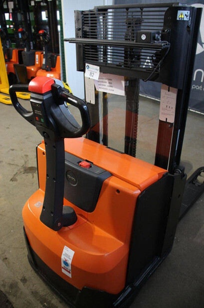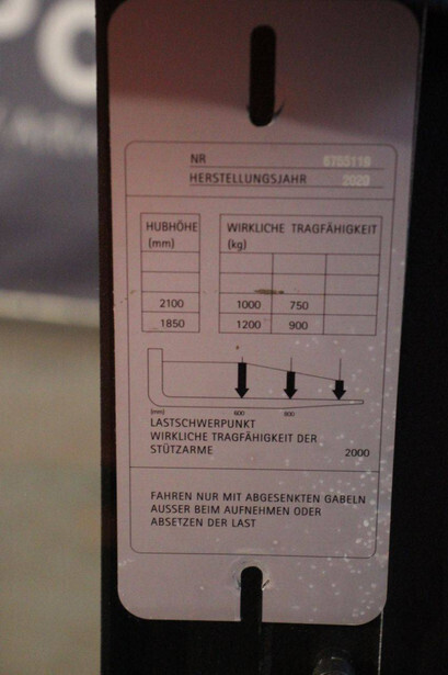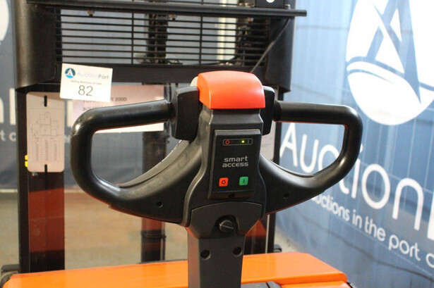 Brand: Toyota Type: SWE200D Serial number: 6755119 Year of construction: 2020 Fuel: Electric Mast type: Duplex Lifting capacity: 2000 kg Lifting height: 2100 mm Drive-through height: 1570 mm Operating hours read: 1860 h Color: orange