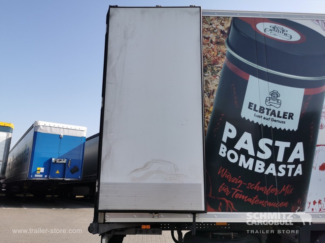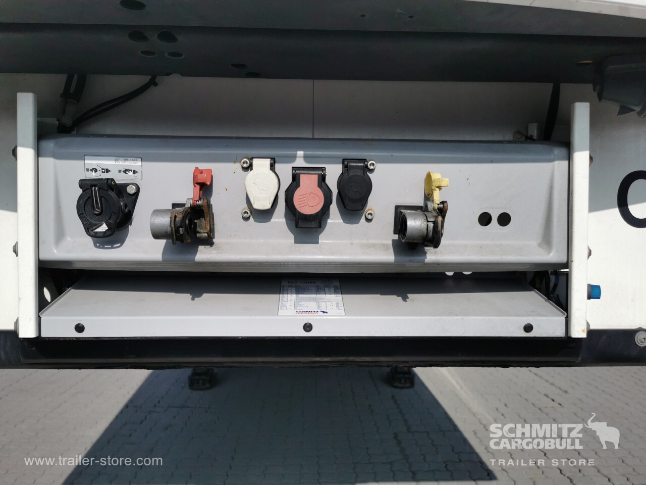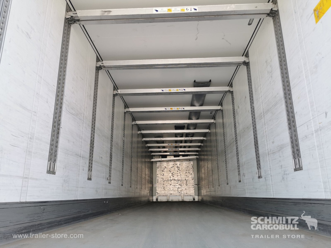 Remarks: **Safety**\\Rear underrun, Antilock Braking System ABS, Telematics system\\\\**Interior**\\Double deck with beams\\\\**Exterior**\\Air suspension, Spare wheel carrier double, Bolted chassis, Gantry doors, 1x15 and 2x7 pin plug, Antispray\\\\**Cargo securing**\\Cargo securing with certificate, DIN EN 12642 (code XL) certificate\\\\**Brake system**\\Disc brake, Schmitz ROTOS\\\\**Floor**\\Aluminum floor\\\\**Wand**\\Stirnwand verstärkt\\\\**Wall**\\Frontwall recess for cooling, Wall thickness45 mm\\\\**Cooling unit**\\Schmitz Cargobull S.CU V 1.0, Diesel/Elektro, 2.328 Operating hours Diesel, 496 Operating hours electric\\\\**Loading area**\\Length 13.403 mm, Width 2.490 mm, Height 2.650 mm, Volume 88 m³\\\\**Tyre sizes**\\1. Achse: 385/65 R22.5 , Tread depth: 9 mm / 8 mm, 2. Achse: 385/65 R22.5 , Tread depth: 4 mm / 5 mm, 3. Achse: 385/65 R22.5 , Tread depth: 13 mm / 13 mm\\\\**Other dimensions and weights**\\GVW: 36.000 kg\\\\----
