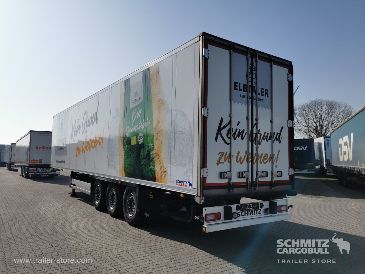 Remarks: **Safety**\\Rear underrun, Antilock Braking System ABS, Hubodometer, Telematics system\\\\**Interior**\\Double deck with beams\\\\**Exterior**\\Air suspension, Spare wheel carrier double, Bolted chassis, Gantry doors, 1x15 and 2x7 pin plug, Antispray\\\\**Cargo securing**\\Cargo securing with certificate, DIN EN 12642 (code XL) certificate\\\\**Brake system**\\Disc brake, Schmitz ROTOS\\\\**Floor**\\Aluminum floor\\\\**Wall**\\Frontwall recess for cooling, Wall thickness45 mm\\\\**Cooling unit**\\Schmitz Cargobull S.CU V 1.0, Diesel/Elektro, 2.286 Operating hours Diesel, 899 Operating hours electric\\\\**Loading area**\\Length 13.403 mm, Width 2.490 mm, Height 2.650 mm, Volume 88 m³\\\\**Tyre sizes**\\1. Achse: 385/65 R22.5 , Tread depth: 12 mm / 12 mm, 2. Achse: 385/65 R22.5 , Tread depth: 7 mm / 5 mm, 3. Achse: 385/65 R22.5 , Tread depth: 8 mm / 8 mm\\\\**Other dimensions and weights**\\GVW: 36.000 kg\\\\----