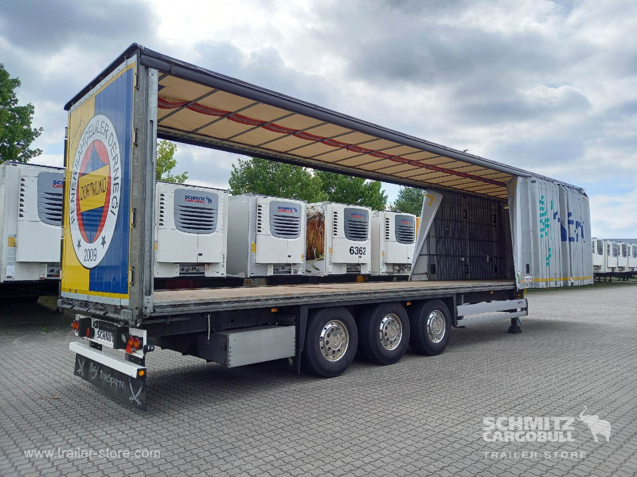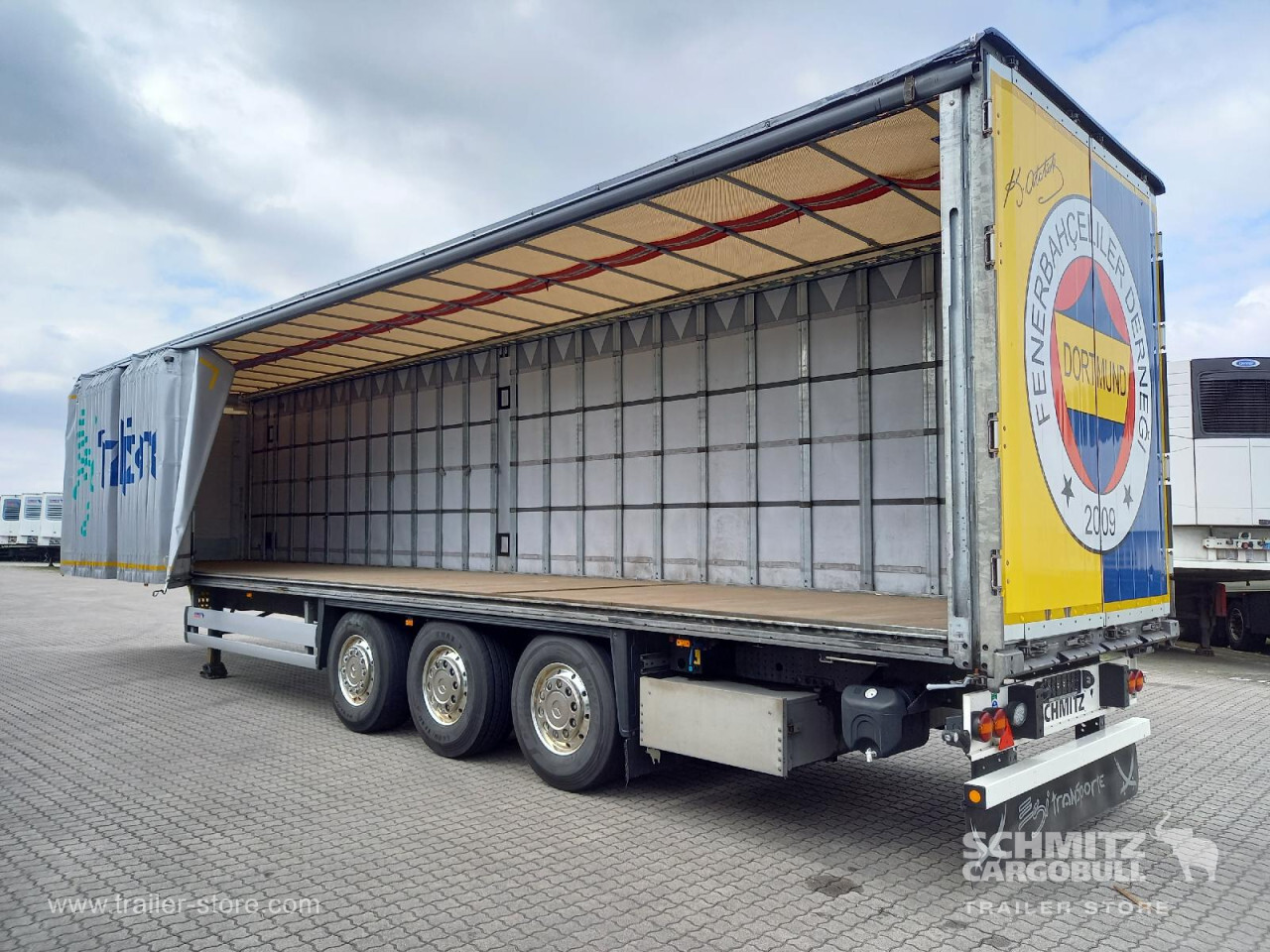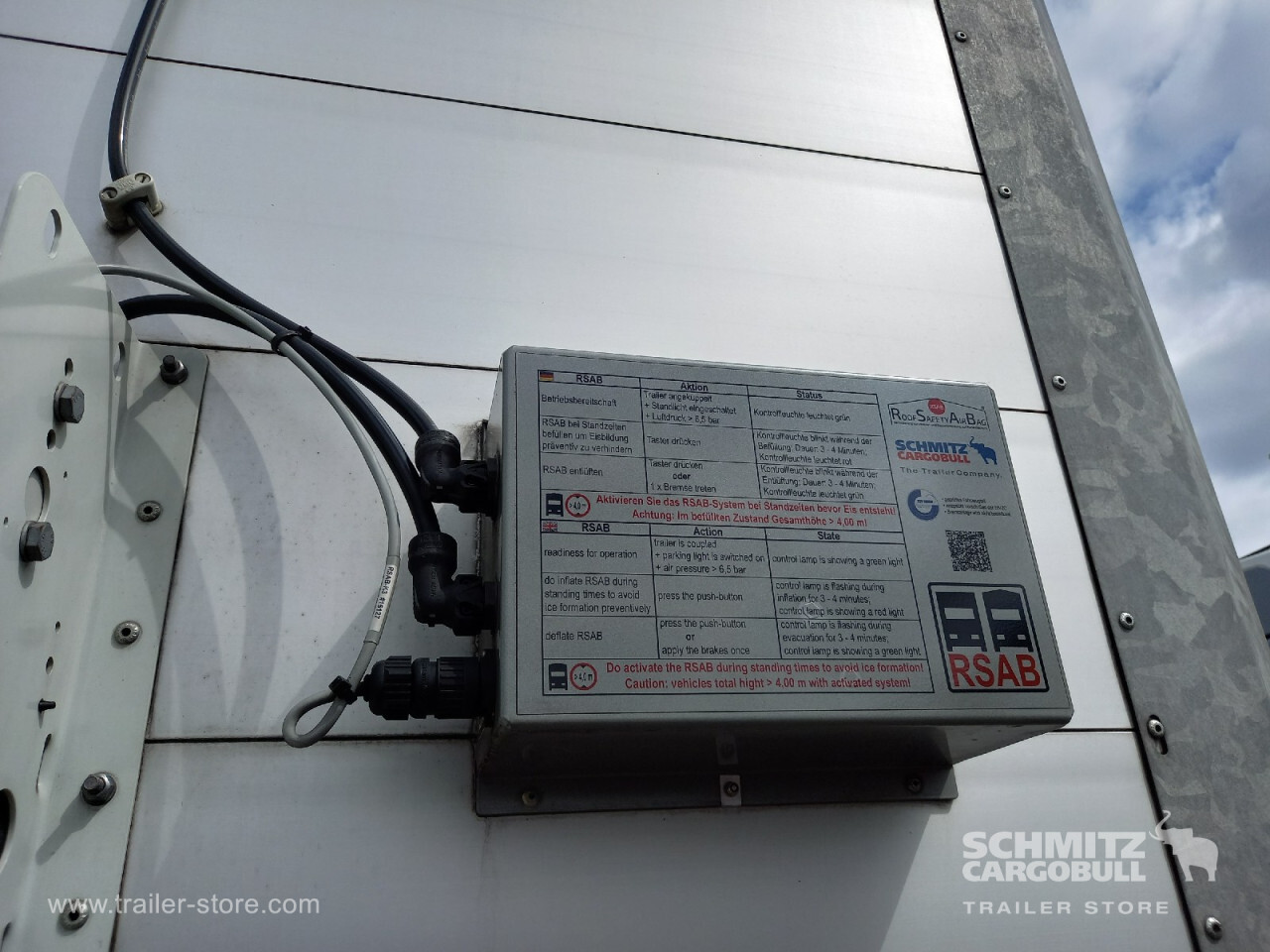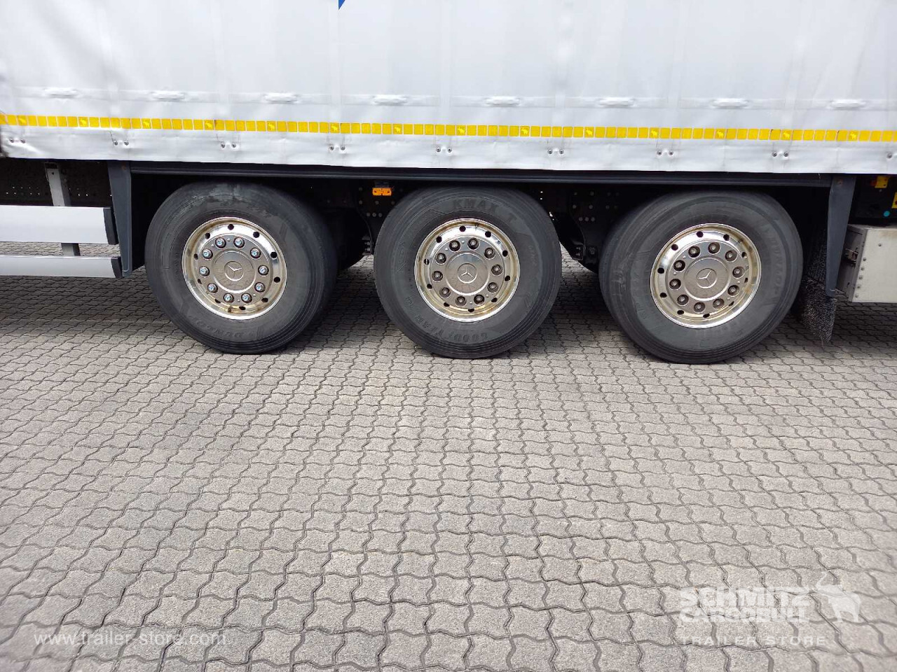 Remarks: **Safety**\\Rear underrun, Antilock Braking System ABS, Telematics system\\\\**Exterior**\\Air suspension, Lift axle front, Bolted chassis, Sliding roof, 1x15 and 2x7 pin plug, Antispray, Light alloy rims, Roof Safety Airbag, Stowage box\\\\**Cargo securing**\\Cargo securing with certificate, DIN EN 12642 (code XL) certificate, DC 9.5 certificate, Beverage certificate, Pallet retaining rail\\\\**Brake system**\\Disc brake, Schmitz ROTOS\\\\**Floor**\\Wooden floor, Lashing rings in floor\\\\**Loading area**\\Length 13.620 mm, Width 2.480 mm, Height 2.680 mm, Volume 90 m³\\\\**Tyre sizes**\\1. Achse: 385/65 R22.5 , Tread depth: 7 mm / 5 mm, 2. Achse: 385/65 R22.5 , Tread depth: 11 mm / 15 mm, 3. Achse: 385/65 R22.5 , Tread depth: 7 mm / 9 mm\\\\**Other dimensions and weights**\\GVW: 36.000 kg\\\\----