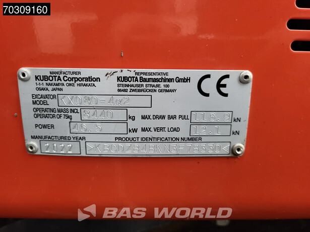 Get a detailed inspection report for 2022 KUBOTA KX080-4A2 and buy with complete peace of mind.