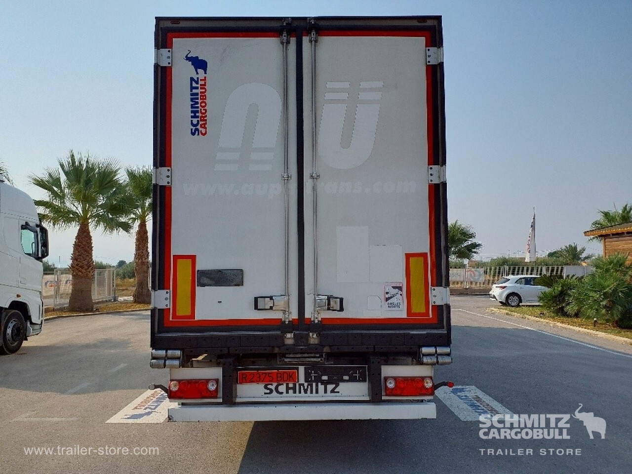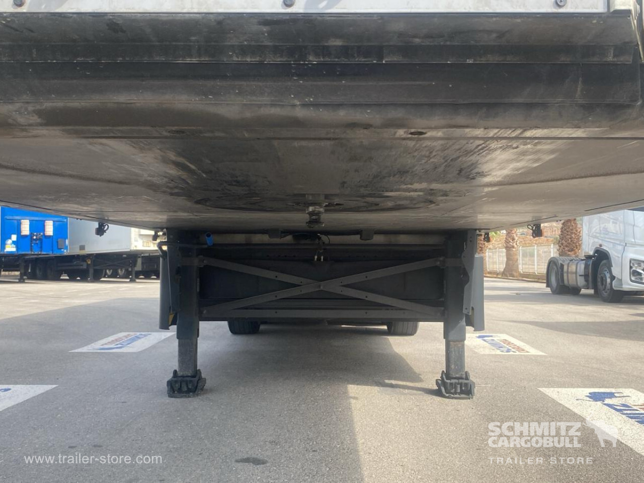 Remarks: **Safety**\\Rear underrun, Antilock Braking System ABS, Fire extinguisher holder, Telematics system\\\\**Interior**\\Temperature recorder\\\\**Exterior**\\Air suspension, Pallet box, Bolted chassis, Gantry doors, 1x15 and 2x7 pin plug, Antispray, International customs seals\\\\**Cargo securing**\\Load securing rail\\\\**Brake system**\\Disc brake, Schmitz ROTOS\\\\**Floor**\\Aluminum floor\\\\**Wand**\\Stirnwand verstärkt\\\\**Wall**\\Frontwall recess for cooling\\\\**Cooling unit**\\Schmitz Cargobull S.CU V 2.0, Diesel/Elektro\\\\**Loading area**\\Length 13.403 mm, Width 2.460 mm, Height 2.700 mm, Volume 89 m³\\\\**Tyre sizes**\\ 385/55 R22.5 , 385/55 R22.5 , 385/55 R22.5\\\\**Other dimensions and weights**\\GVW: 35.000 kg\\\\----