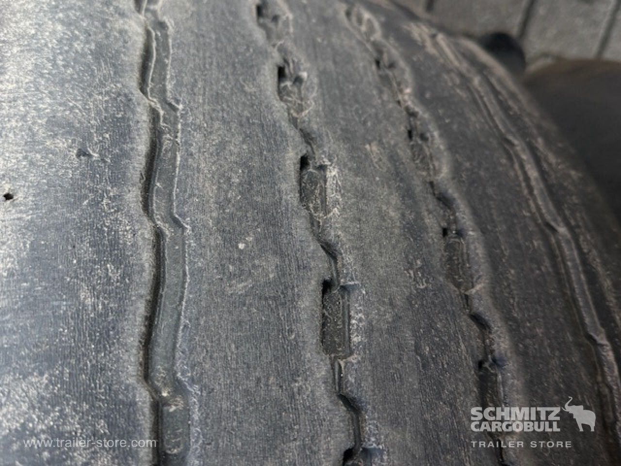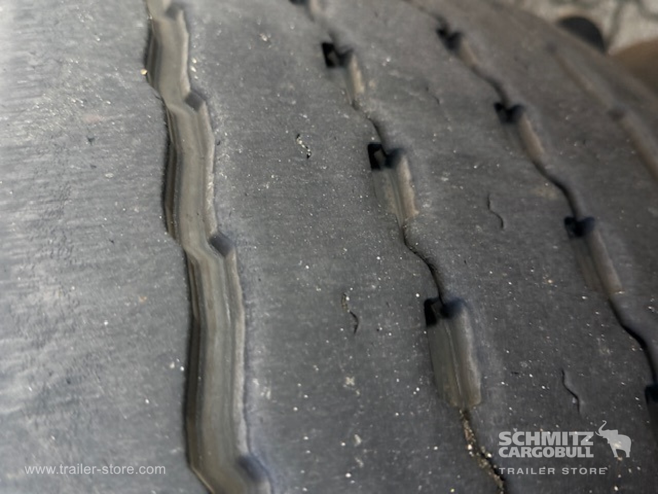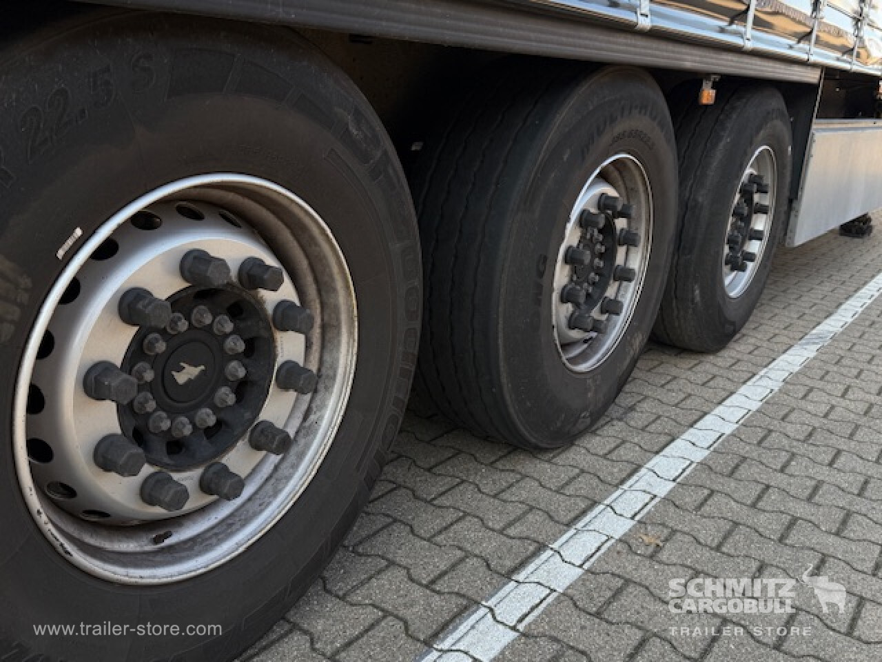 Remarks: **Safety**\\Rear underrun, Antilock Braking System ABS, Fire extinguisher holder 2x\\\\**Exterior**\\Air suspension, Lift axle, Pallet box: 32 pallets, Spare wheel carrier double, Ferry lashings, Bolted chassis, Sliding roof, 1x15 and 2x7 pin plug, Antispray\\\\**Cargo securing**\\Cargo securing with certificate, DIN EN 12642 (code XL) certificate, Punched load securing side rave, Wooden - support slats\\\\**Brake system**\\Disc brake, Schmitz ROTOS\\\\**Floor**\\Wisadeck floor\\\\**Loading area**\\Length 13.620 mm, Width 2.480 mm, Height 2.780 mm, Volume 93 m³\\\\**Tyre sizes**\\ 385/65 R22.5 , 385/65 R22.5 , 385/65 R22.5\\\\**Other dimensions and weights**\\Payload: 32.426 kg, GVW: 39.000 kg, Wheel base: 7.700 mm,7.700\\\\----