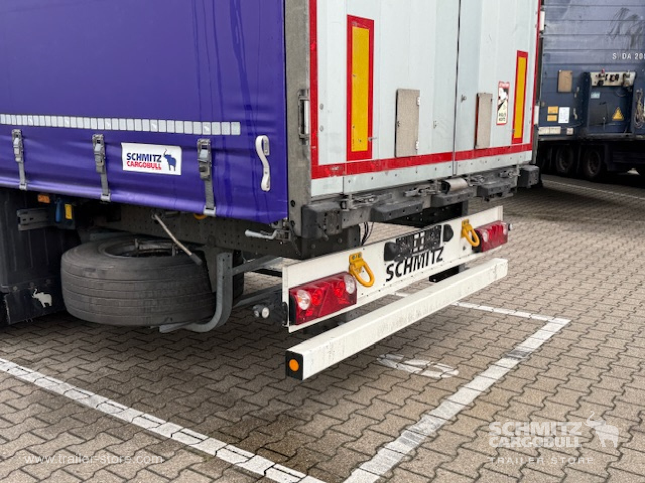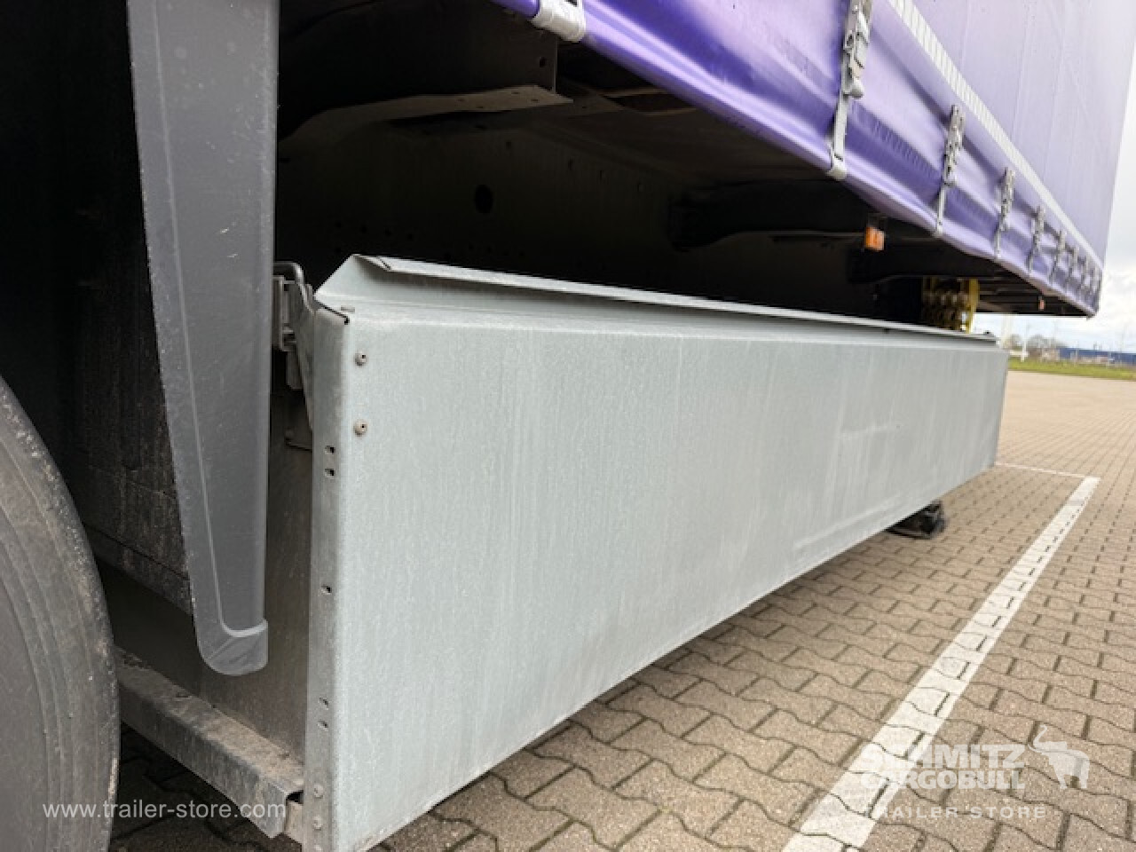 Remarks: **Safety**\\Rear underrun, Antilock Braking System ABS, Fire extinguisher holder 2x\\\\**Exterior**\\Air suspension, Lift axle, Pallet box: 32 pallets, Spare wheel carrier double, Ferry lashings, Bolted chassis, Sliding roof, 1x15 and 2x7 pin plug, Antispray\\\\**Cargo securing**\\Cargo securing with certificate, DIN EN 12642 (code XL) certificate, Punched load securing side rave\\\\**Brake system**\\Disc brake, Schmitz ROTOS\\\\**Floor**\\Wisadeck floor\\\\**Loading area**\\Length 13.620 mm, Width 2.480 mm, Height 2.780 mm, Volume 93 m³\\\\**Tyre sizes**\\ 385/65 R22.5 , 385/65 R22.5 , 385/65 R22.5\\\\**Other dimensions and weights**\\Payload: 32.426 kg, GVW: 39.000 kg, Wheel base: 7.700 mm,7.700\\\\----