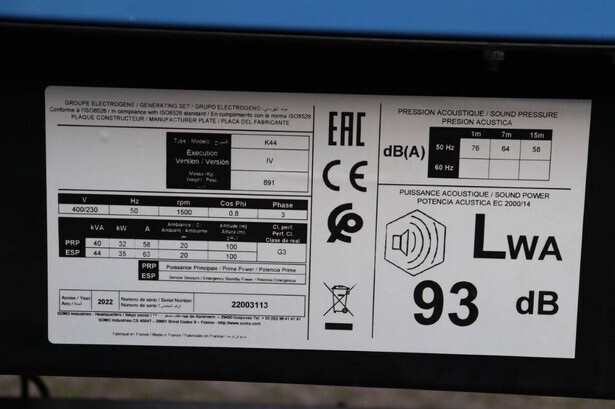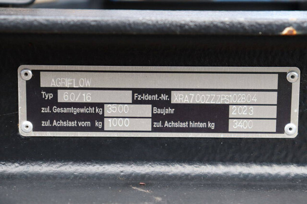 Brand: Agriflow Type: 60/16 Serial number: XRA700ZZZPS102804 Year of construction: 2023 Fuel: Diesel Engine Brand: Kohler Engine power: 35 kW Voltage: 400 V Reading operating hours: 1112 h Color: blue