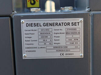 Brand: Ricardo Type: GF2-W50 Serial number: 272V202409 Year of construction: 2024 Fuel: Diesel Power: 45 kVA Voltage: 380 V Current: 68 A Machine weight: 1145 kg Color: gray