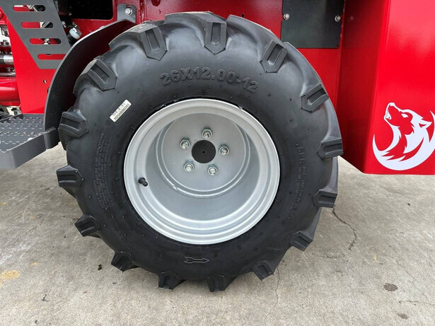 Brand: Wolf Type: MINI 750 Serial number: 252361 Year of construction: 2025 Fuel: Diesel Engine make and type: Perkins 403J-11 Engine power: 18.4 kW Cylinders: 3 Reading operating hours: 1 h Machine weight: 1500 kg Transport dimensions (LxWxH): 3325 x 1150 x 2360 mm Tray width: 1250 mm Tires: Pneumatic tires Front and rear wheels: 26x12.00-12 Color: red