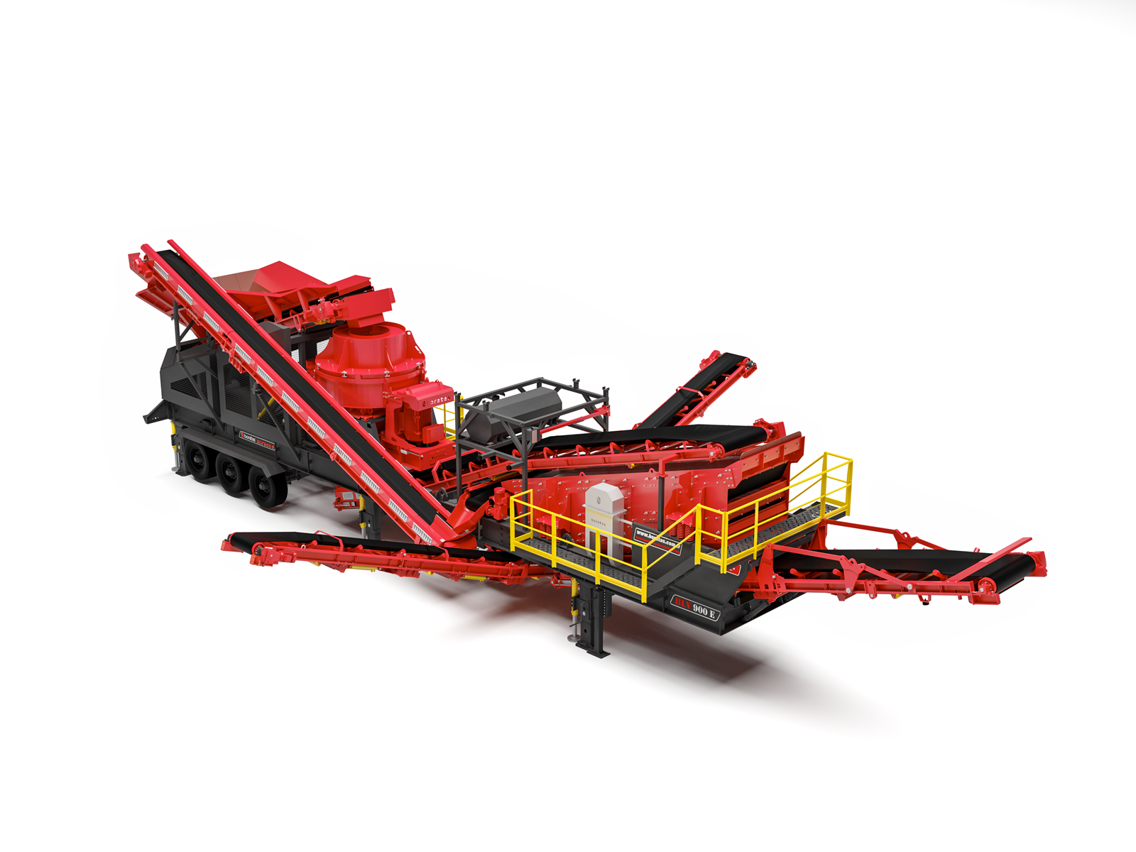 The BLV900-E combines a vertical shaft impact crusher with an onboard vibrating screen to produce finely classified material in a single mobile unit, enhancing site productivity and reducing handling steps.