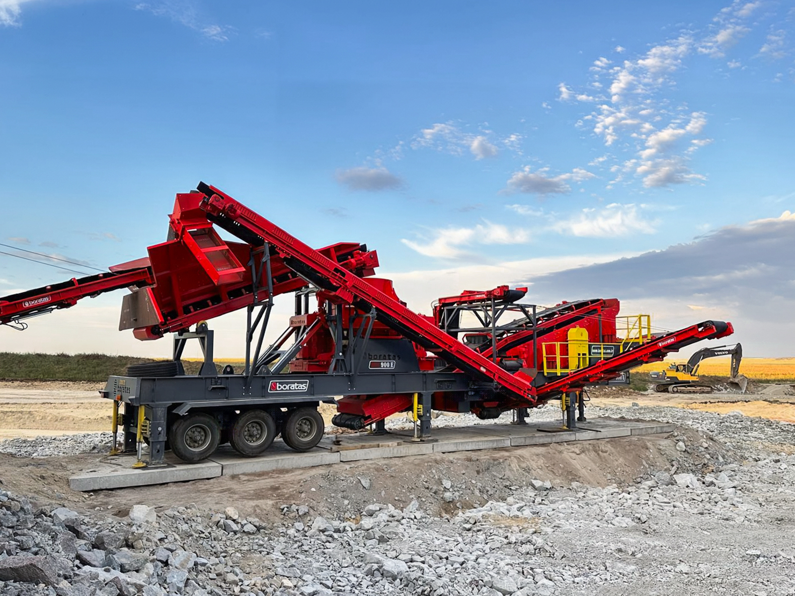 Boratas Wheeled Mobile VSI Crushing and Screening Plant BLV900-E is a semi-mobile vertical shaft impact crusher and screen engineered for the production of high-quality sand and finely graded aggregates. Equipped with a closed-rotor VSI crusher and an integrated vibrating screen on a single wheeled chassis, it delivers fine, cubical materials suitable for concrete, asphalt, and construction applications.