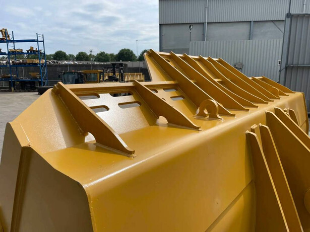 Brand new Loader bucket suitable for 988K machine. The bucket is 4.02 meter wide and it has a capacity of 6,9 cubic meter. The three pin holes iare 5 1/2 inch- either the upper and lower pin holes. The upper inner size distance is 215 mm, the lower inner size distance is 891 and the outer size distance is 1239 mm.