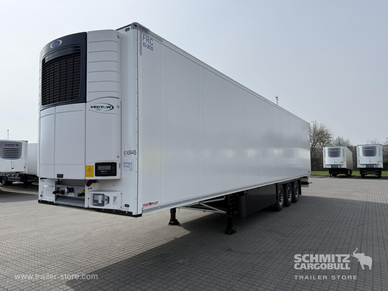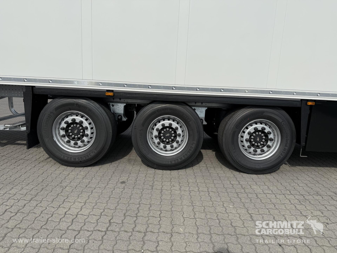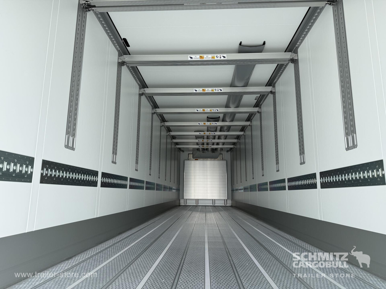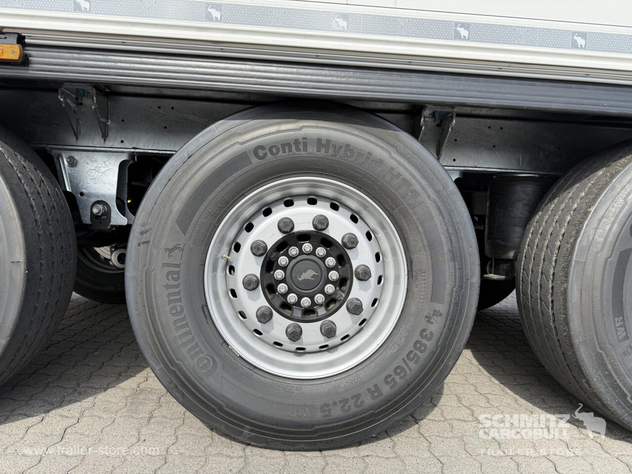 Remarks: **Safety**\\Rear underrun, Antilock Braking System ABS, Telematics system\\\\**Interior**\\ISO partition wall preparation, Temperature recorder, Double deck with beams, Multifunctional floor\\\\**Exterior**\\Air suspension, Lift axle front, Pallet box, Spare wheel carrier double, Bolted chassis, Gantry doors, 1x15 and 2x7 pin plug, Antispray, Dynamic ramp protection (DRP)\\\\**Cargo securing**\\Load securing rail\\\\**Brake system**\\Disc brake, Schmitz ROTOS\\\\**Floor**\\Aluminum floor\\\\**Cooling unit**\\Carrier, Diesel/Elektro\\\\**Loading area**\\Length 13.403 mm, Width 2.490 mm, Height 2.650 mm, Volume 88 m³\\\\**Tyre sizes**\\ 385/65 R22.5 , 385/65 R22.5 , 385/65 R22.5\\\\**Other dimensions and weights**\\Payload: 30.318 kg, GVW: 39.000 kg\\\\----