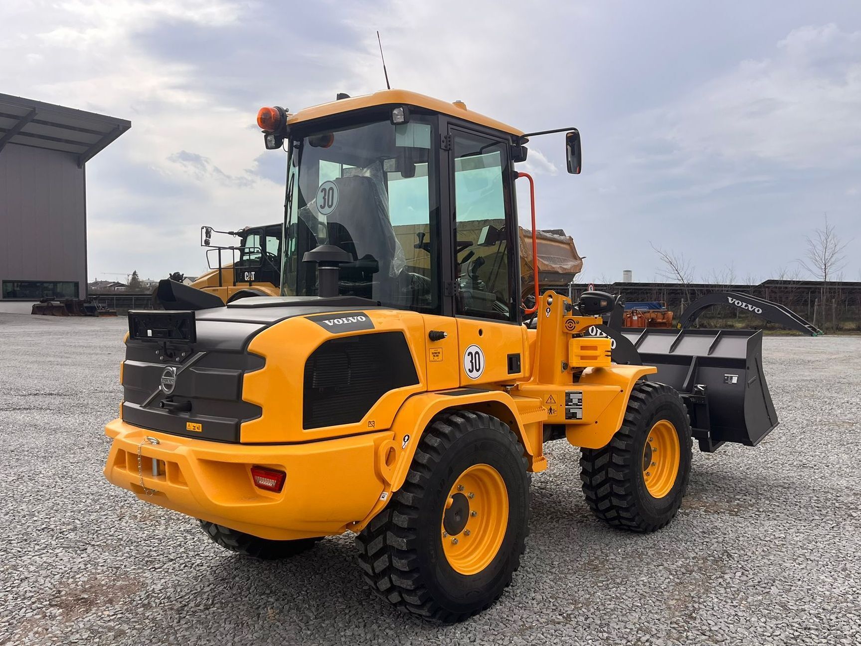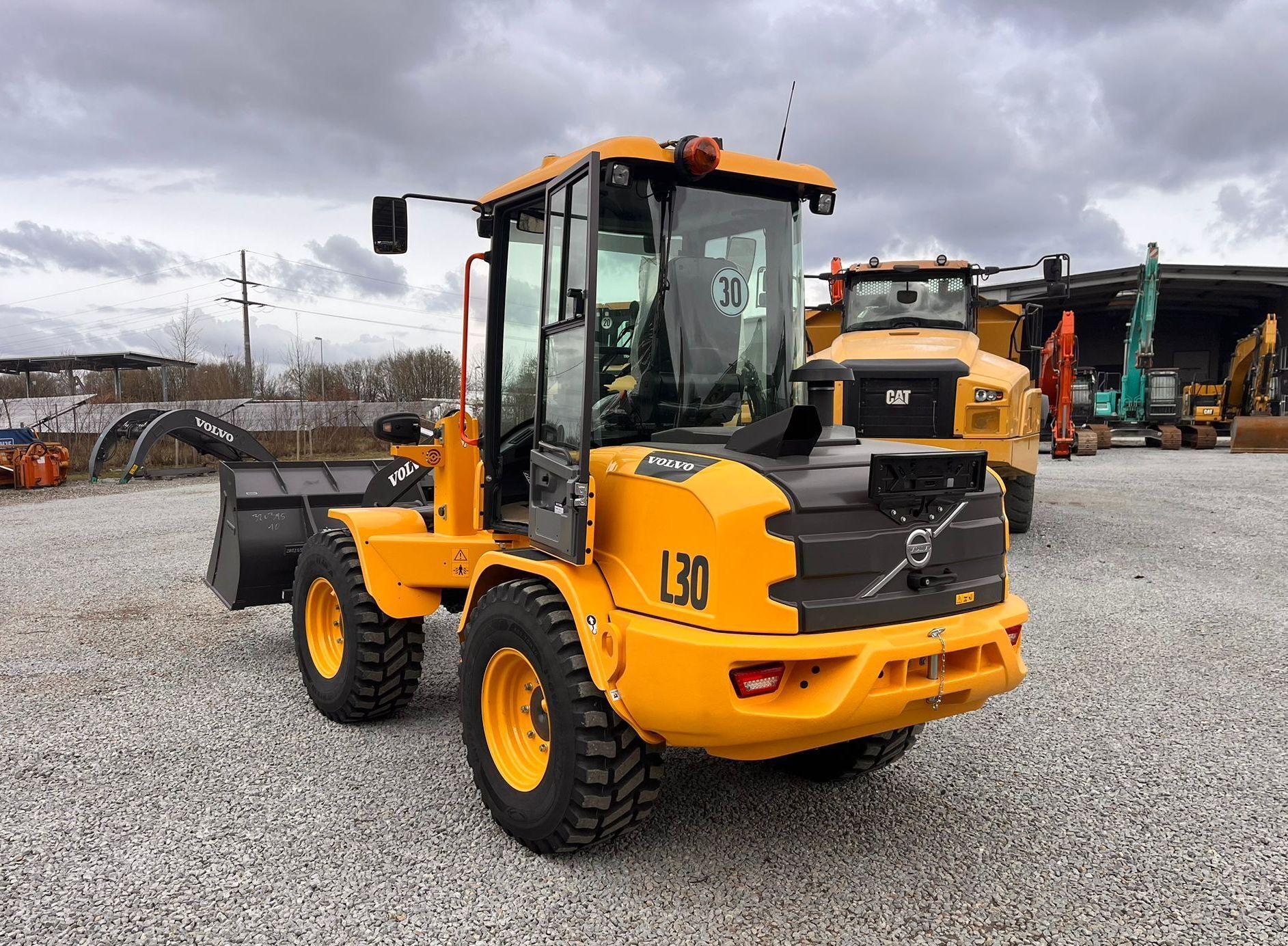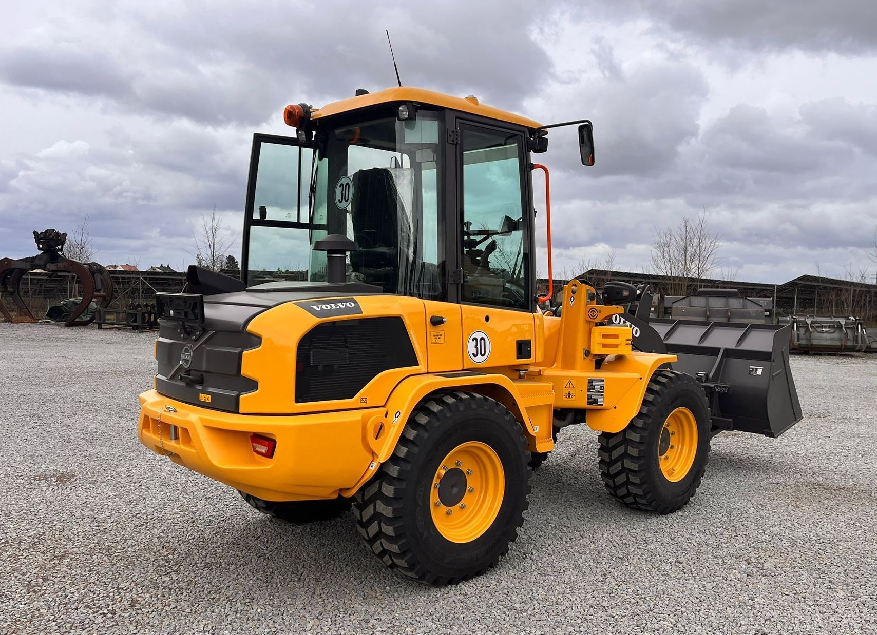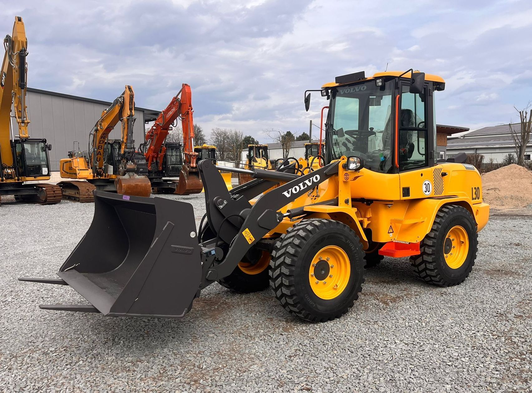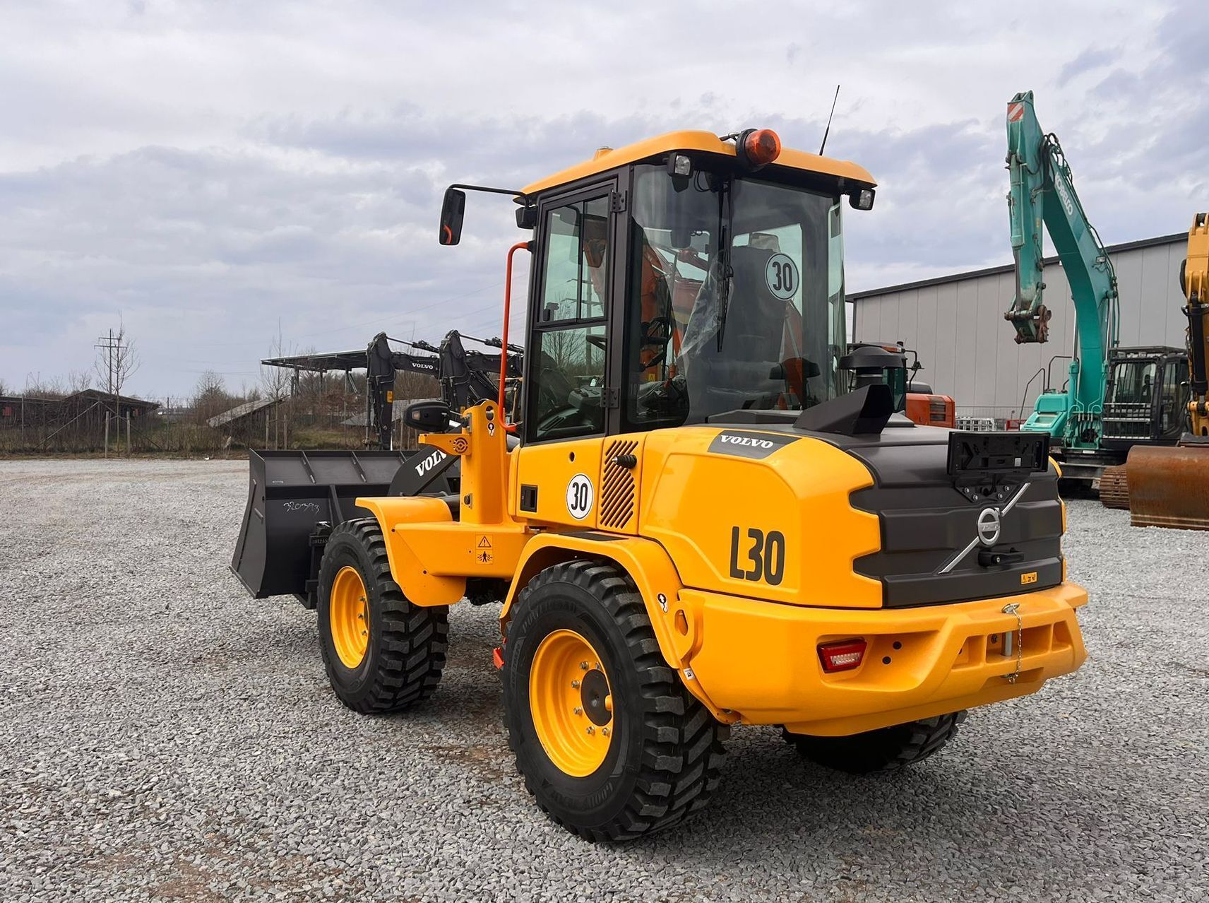 Volvo L30HS NEW Weight around 5,800 kg Engine / Type Volvo D3.3H Power / HP / KW 75 / 55 Emission standard Stage V hydraulic lines 3rd circle Tires / type / size 405/70 R20 *front in % good NEW *back in % good NEW Speed 30 km/h shove (capacity approx. / type) 1.0 m3 with cutting edge Quick coupler (brand) TPZ quick coupler CE-certificate CE-certified Location Plattling, Germany other details Forks, 1-lever control, sweeper preparation, manual turning valve