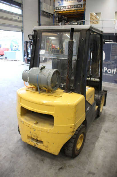 Brand: Daewoo Type: G30S Year of construction: Not known Fuel: LPG Mast type: Duplex Sideshift: Yes Lifting capacity: 3000 kg Lifting height: Not known Operating hours read: Not known Tires: Solid tires Color: yellow