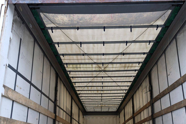 Tyres: Left rear: 7.57 mm Left center: 12.13 mm Front left: 9.04 mm Right rear: 8.82 mm Right center: 9.16 mm Front right: 8.50 mm Machine description: Used semi-trailer.